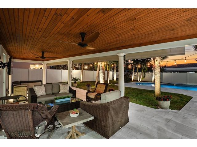 Nestled on a quiet street across from multi-million-dollar Intracoastal estates, this residence offers rare prestige & tranquility. Situated on one of the LHP largest lots in the area, offering 4 bedrooms, 3 baths with a split-bedroom layout, it provides exceptional privacy. Large living areas, formal dining room, lots of natural light leading to outdoor spaces sets the stage for memorable indoor/outdoor gatherings. The chef’s kitchen boasts Wolf appliances, Jenn-Air refrigerator, waterfall marble countertop, & wood cabinetry with spacious pantry. Primary suite with separate his-&-hers bathrooms & a generous walk-in closet. Retreat-like back yard with large porch and fabulous pool area with leathered marble. All impact windows/doors, all plumbing lined w/ 50 yr warranty, Roof 2021.