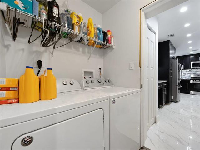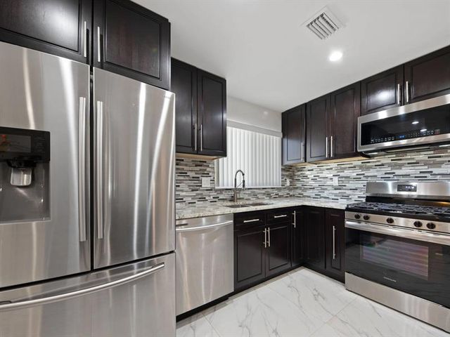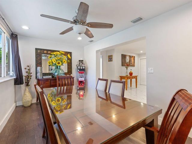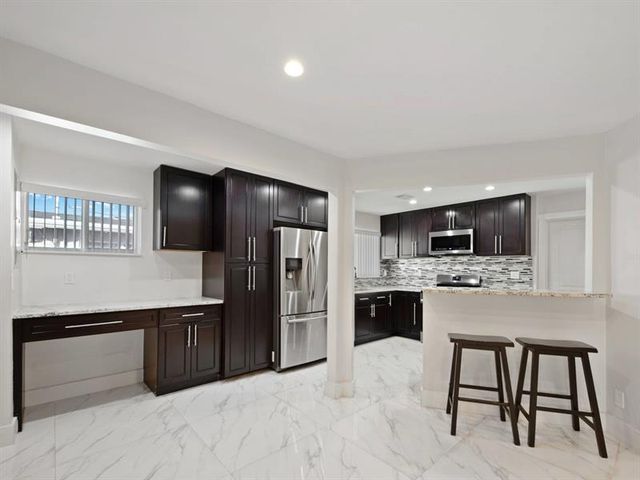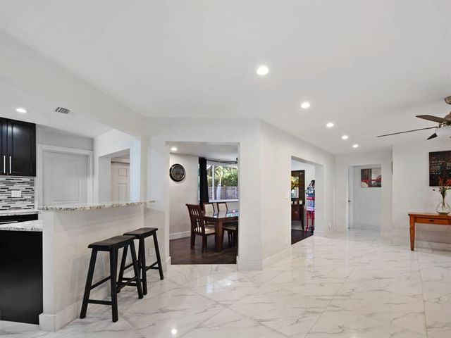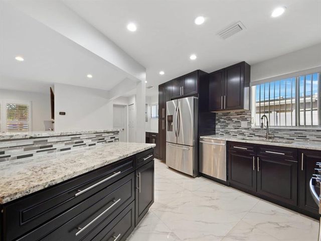 Beautifully upgraded 4BD/2BA home featuring a bright open layout, smooth finished walls/ceilings, 32” porcelain tile, and designer lighting throughout. Chef’s kitchen offers top-of-the-line J&K soft-close cabinetry, lazy Susan storage, 3cm stone countertops, stainless steel appliances, and gas range. Your personal retreat, right in your own backyard with a 30’ x 17’ pool (6 ft deep), built-in fireplace, and fully permitted pavilion, plus expansive paver patio with Blackstone deck, smoker & grill—perfect for entertaining. New 2025 roof, A/C approx. 4 yrs old, gas water heater approx. 4 yrs old. Prime Hollywood location minutes from shopping, highways, and the Hard Rock Hotel & Casino.