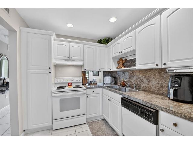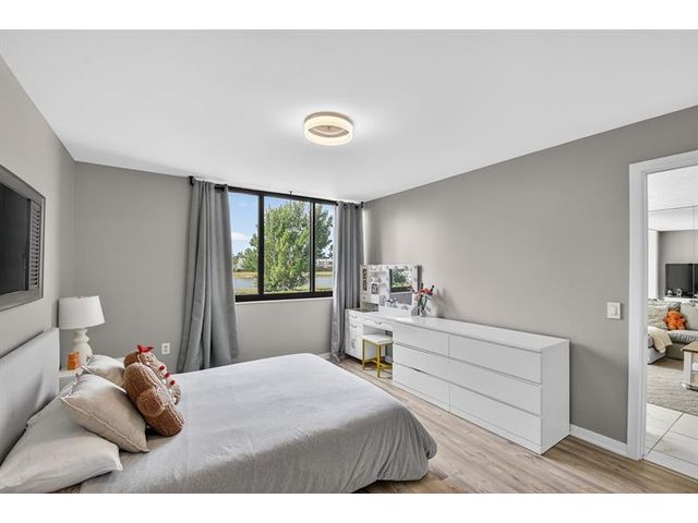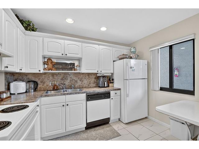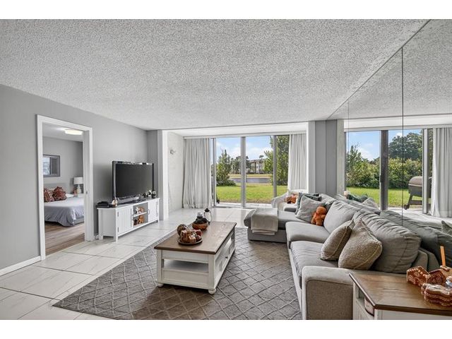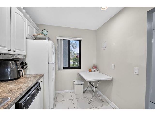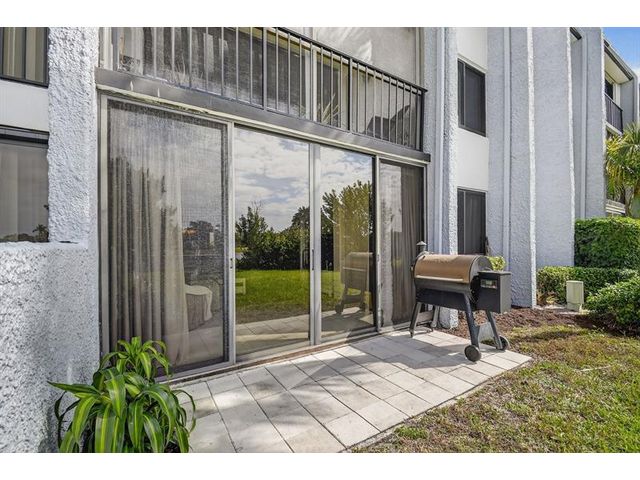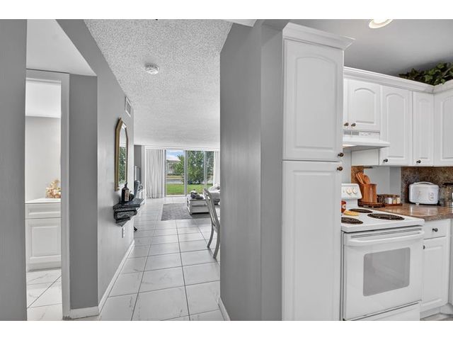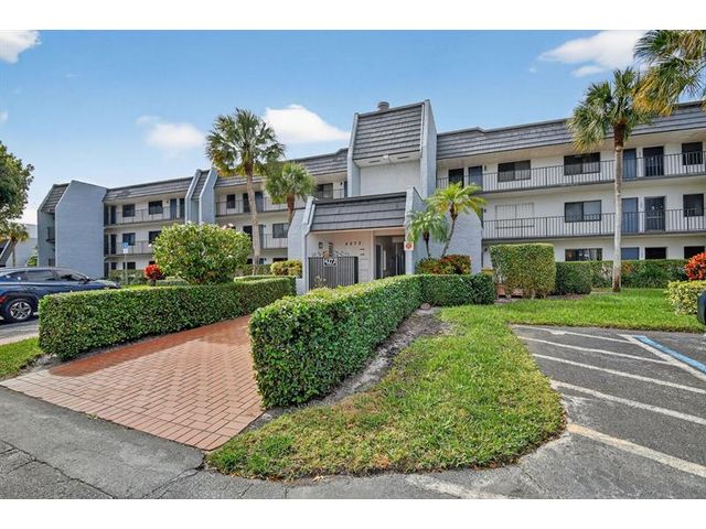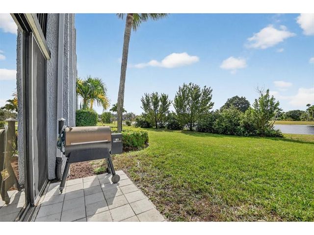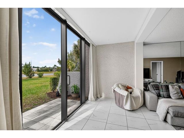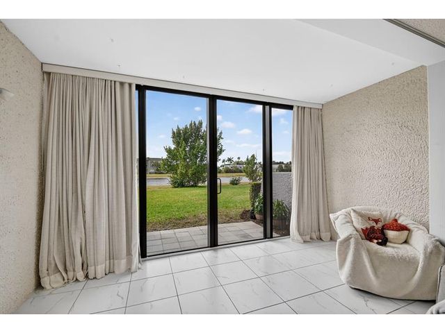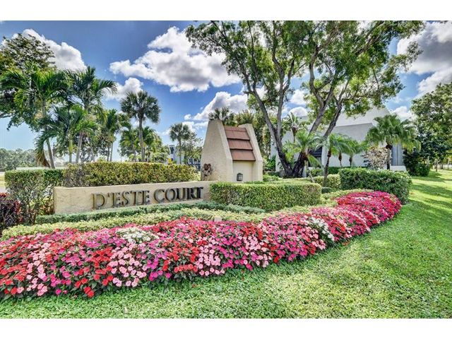 Best value in Deste Court! This first-floor residence features 2 bedrooms and 2 bathrooms and is move-in ready, while also offering an excellent opportunity for buyers looking to renovate and customize to their own taste. Enjoy serene lake views and beautiful sunsets from the back patio, just steps from the community pool. The condo is exceptionally clean, bright, and airy, with recessed lighting in kitchen, new flooring in the primary bedroom, fresh interior paint, and no carpet throughout. Additional highlights include a walk-in shower, white cabinetry eat-in kitchen, generous closet space, and room for a washer and dryer. Optional membership available at The Fountains Country Club. Gated community with 24/7 security. Must have 700+credit score. Only ESA allowed. Easy to show.