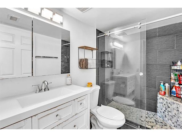 Located east of US1, this beautifully renovated 2/2 unit in the gated community of Village East is close to the beach, airport, downtown, Las Olas, shopping, restaurants and much more. This is a top level unit with Vaulted Ceilings, Walk-in closets, and updates throughout. Updates include light grey hardwood laminate floors in the bedrooms, dark grey floors in the kitchen. One bathroom has been updated with marble on both the floors and in the shower. The second bathroom features a tall sliding glass door and custom shower seat. Replaced both the Air Conditioner & Water heater. This community allows for rentals first year of ownership with a 90-day minimum lease, 2x per year, great for investors or the owner who would like to rent the unit out while not in use