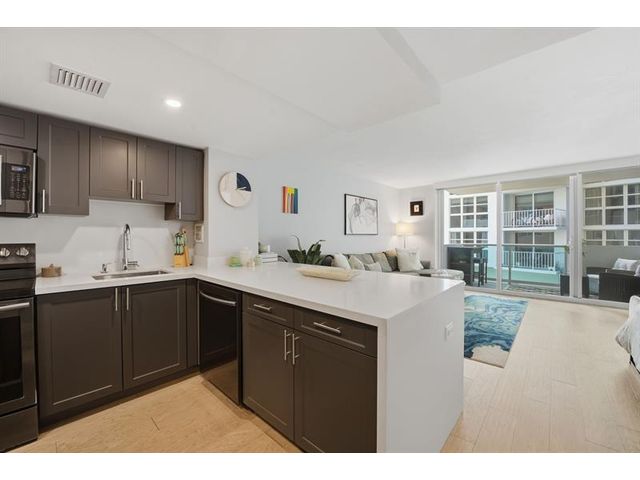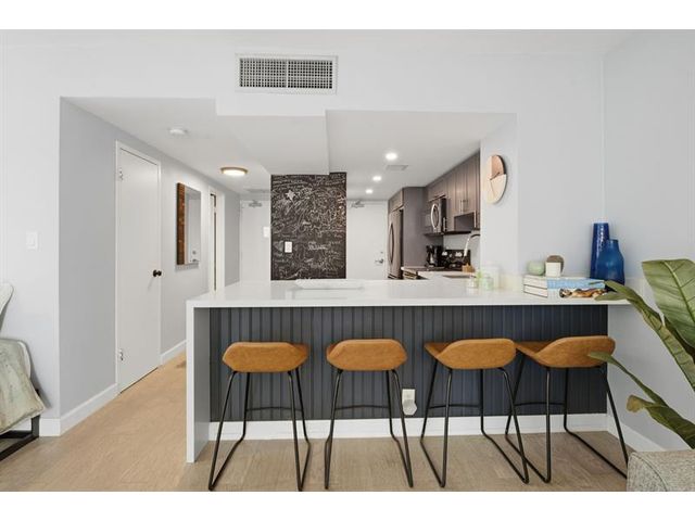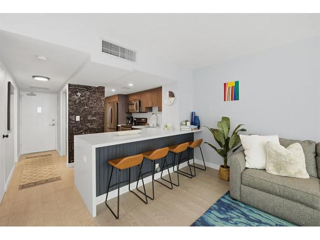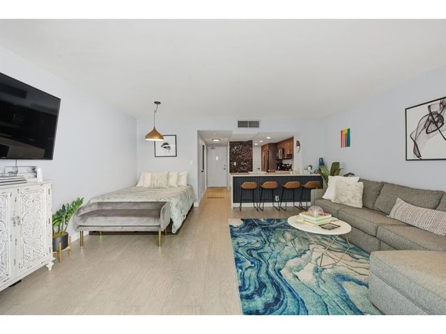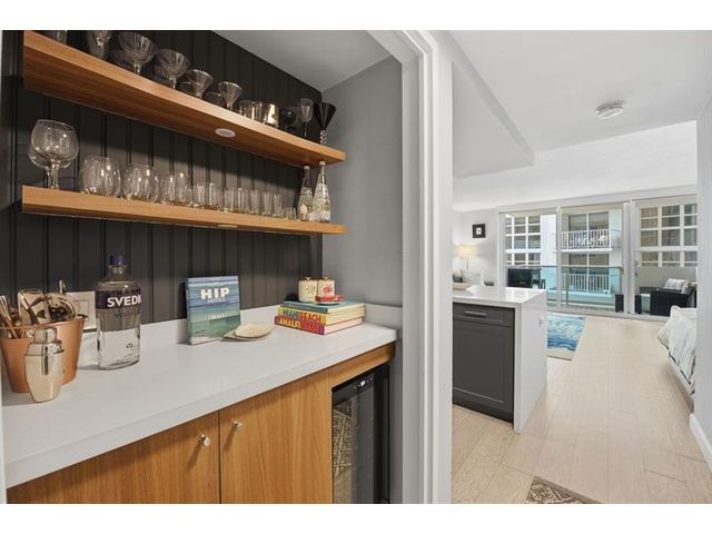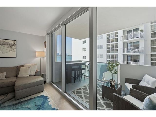 Fully remodeled studio at Mirador South Beach with sleek modern finishes & stunning bay sunsets. Open kitchen features white quartz waterfall counters & full backsplash, gray contemporary cabinetry, & Samsung black stainless appliances. Engineered hardwood floors throughout. Oversized balcony captures wide water & sunset views. Custom built-in bar with quartz top and wine cooler adds style & function. Spa-inspired bath offers quartz vanity, charcoal cabinetry, & glass-enclosed shower. HOA includes high-speed internet, cable, and a state-of-the-art fitness center. Turnkey & move-in ready. Full-service building with bayfront pool, 24-hour front desk, and prime location near Lincoln Road, Whole Foods, & the beach. Great for full-time living, vacation use, or investment. Act fast!!!!