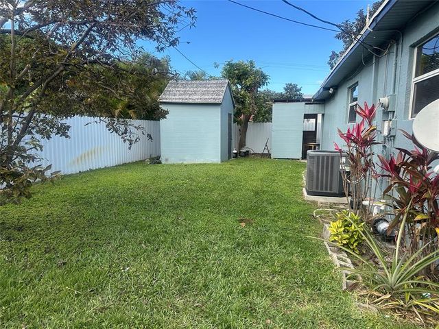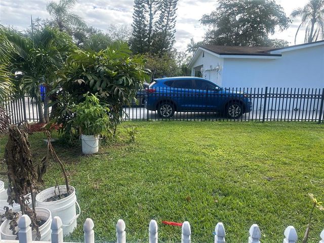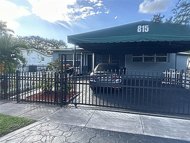 Great curb appeal! This lovely 3-bedroom, 2-bath home features a freshly painted exterior and a screened front patio. Ceramic tile flooring runs throughout the main areas, with laminate wood in the bedrooms. The upgraded kitchen and bathrooms complement the spacious living area, separate dining room, large den, and dedicated laundry space. A large enclosed patio serves as extra storage, with additional storage available in the backyard. The fully fenced property boasts beautiful landscaping with manicured grass and a stamped concrete driveway. This well-maintained home is a true gem!