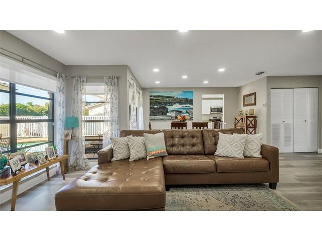 Beautiful 4bed, 2bath pool home w/1-car garage located in fantastic Bonaventure neighborhood zoned for A+ schools. Move-in-ready home features updated kitchen w/granite counters, pantry, Frigidaire SS appliances, plus new laminate flooring throughout. Fully fenced, private pool w/water views,& covered patio perfect for entertaining/relaxing year-round. Residents have access to the highly sought-after Bonaventure Town Center Club, offering 2 pools, fitness center, fitness & lifestyle classes, tennis & pickleball courts, indoor bowling, basketball/skating rink, billiards, business center, playgrounds & summer & holiday programs. 2021 A/C, 2023 Washer & Dryer in Garage, 2024 Water Heater, updated plumbing, new storm rated garage door & accordion hurricane shutters for full insurance discount.
