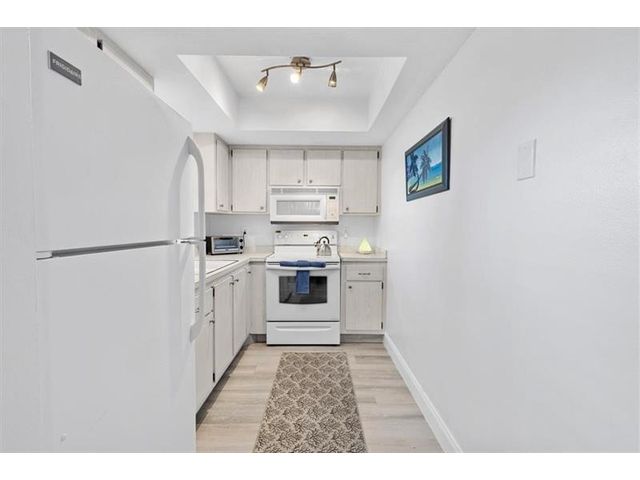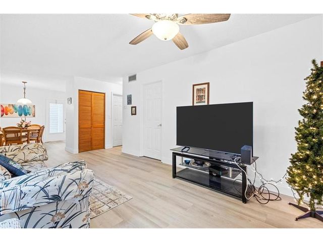 First-floor corner unit located in Kingswood Phase I Condo, offered fully furnished. This 1-bedroom, 1.5-bath residence features new tile flooring throughout the living areas and fresh interior paint. The living room and bedroom both offer sliding glass doors leading to a large screened patio, providing abundant natural light and extended living space. Recent updates include new blinds, new oven, and new bathroom vanities. Assigned parking space conveniently located directly in front of the unit. Community amenities include multiple pools, clubhouse, game room, and shuffleboard courts. Prime location just minutes from beaches and Hutchinson Island. Currently tenant-occupied with an active lease in place.