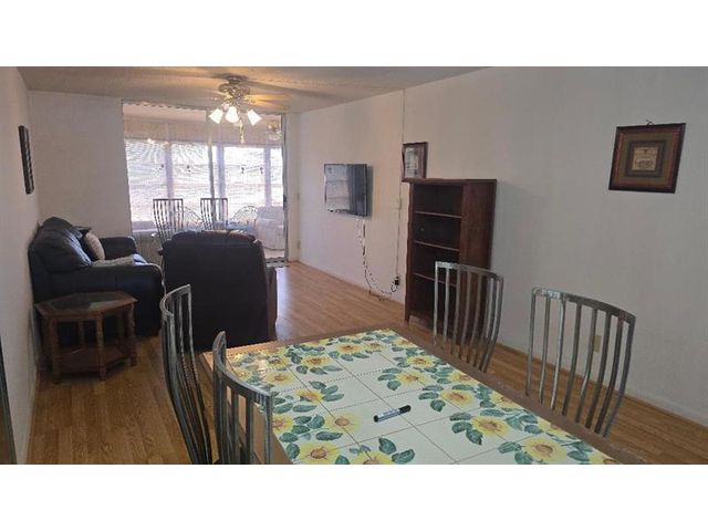 Beautiful Spacious, 1 bedroom, 1.5 bath unit with a large enclosed balcony. This unit is one of the largest in the community. large kitchen with stainless steel appliances, laminated wood floors through. This is an age 55+ community, well kept complex with resort style amenities, including two large pools, tennis court, barbeque area and Gym. Close to shopping, restaurants, public transportation and major highways. Shows very nice and clean ready for a new owner easy to show.