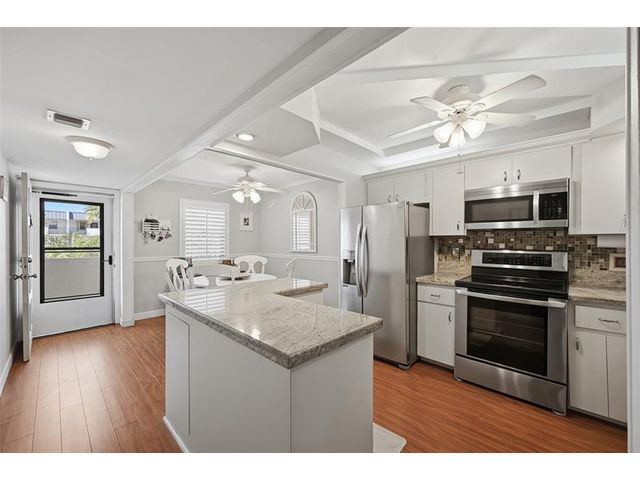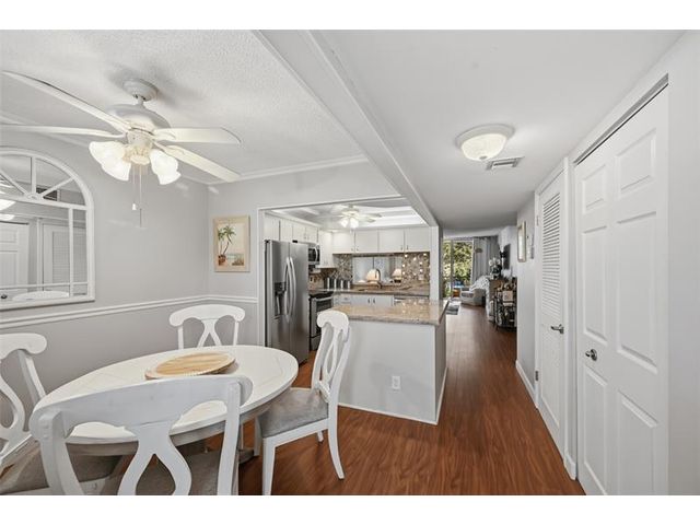 As you enter, you are greeted with modern comfort and coastal charm. The living room featuring wood-finished floors and a floor to ceiling sliding door which floods the space with natural light. The well-appointed kitchen boasts stainless steel appliances, dark wood-style flooring, and granite countertops. The adjoining dining area provides a perfect setting for family meals or entertaining guests. The Island Club community offers a variety of amenities, including a boat dock, heated pool, hot tub, sauna, function hall, fitness center, billiard room and so much more. Enjoy the convenience of nearby shopping, dining, and beaches, making this location ideal for those who appreciate a vibrant, suburban lifestyle. Don’t miss the opportunity to make this exquisite condominium your new home!