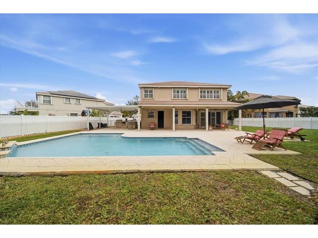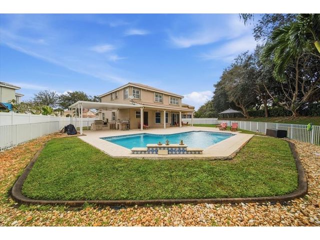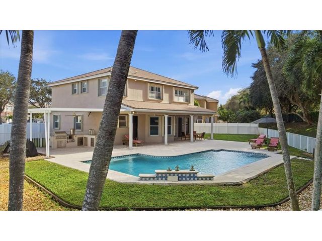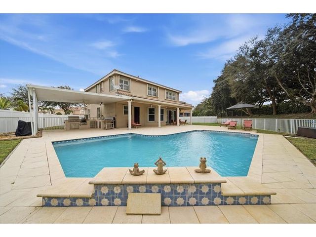 Located in the gated Silver Isles community of Miramar, this stunning 5 Bed + Den 4 bath two-story home is perfect for entertaining and comfortable living. The oversized cul-de-sac lot offers a rare backyard retreat with no neighbors behind, featuring a saltwater pool, expansive cool-deck pavers, and an outdoor kitchen. Inside, enjoy a beautifully updated kitchen with a large quartz island, white cabinetry, stainless steel appliances, hood, and beverage fridge, along with updated bathrooms and generous storage throughout. The spacious primary suite features a sitting area and two large walk-in closets. A bedroom and full bath downstairs add flexibility. Community amenities include a clubhouse, pool and more. Conveniently located near I-75 and within walking distance to shopping and dining.