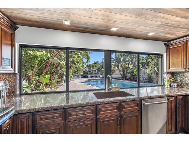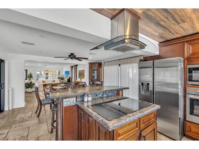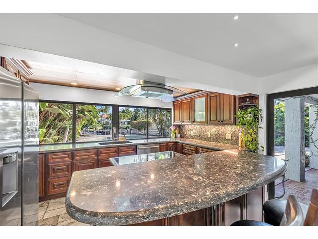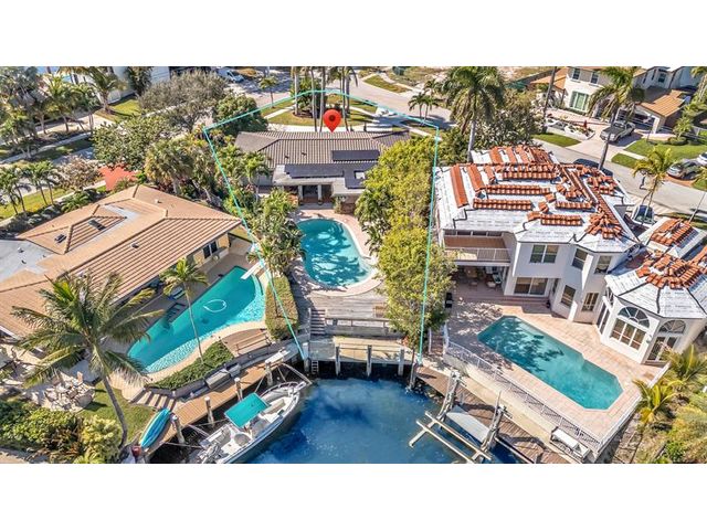 RARE OPPORTUNITY- Renovated waterfront pool home on a massive corner lot in the heart of Lighthouse Point with no fixed bridges and direct DEEP WATER, ocean access. This boater’s dream offers approximately 25 ft of dockage and quick access to both Hillsboro Inlet and Boca Inlet. This 3-bedroom, 2-bath residence showcases travertine floors, a spacious open living area, formal dining, and a flexible den/office space. The beautifully remodeled eat-in kitchen features granite countertops, wood cabinetry, stainless steel appliances, a cooking island, breakfast bar seating, and stunning views of the heated pool and waterway. Major upgrades include impact windows and doors, new roof (2021), new concrete dock and seawall (2021), new A/C, and updated electrical.