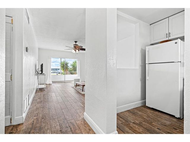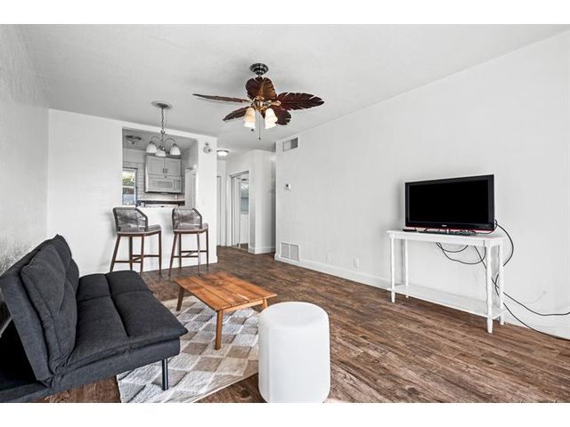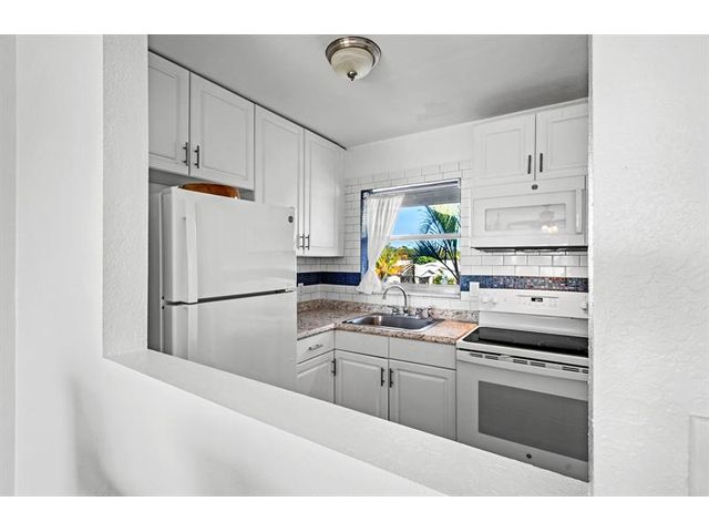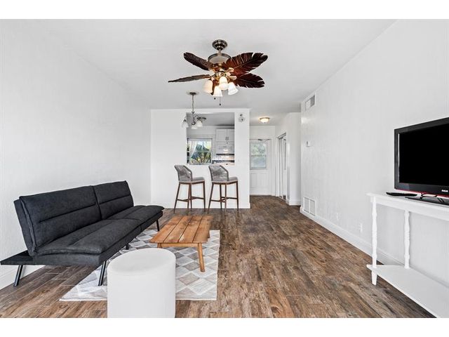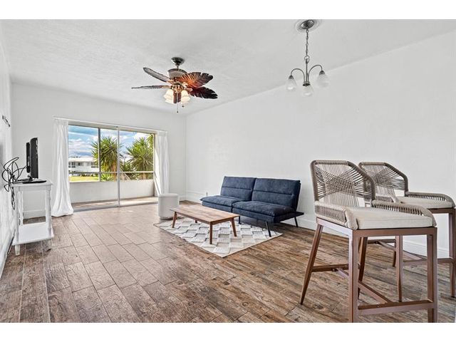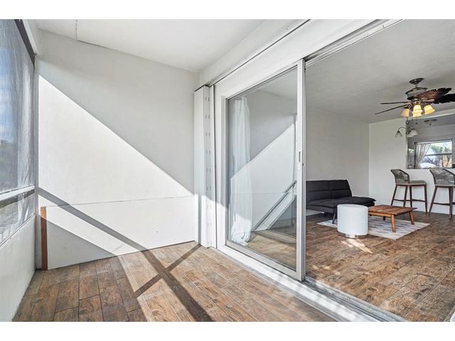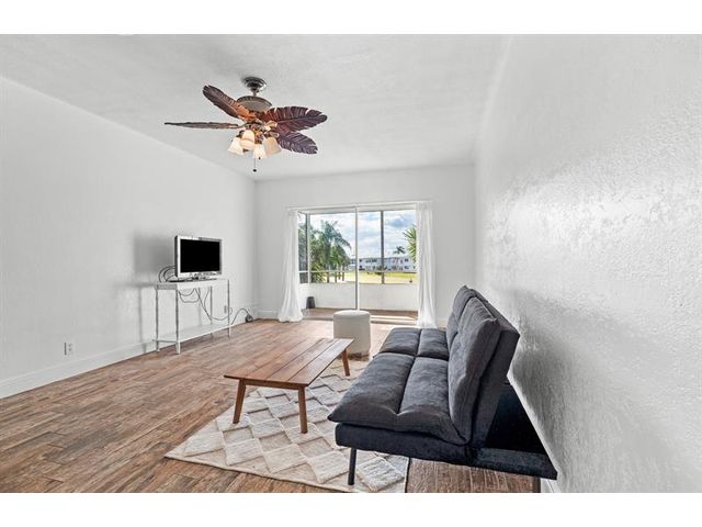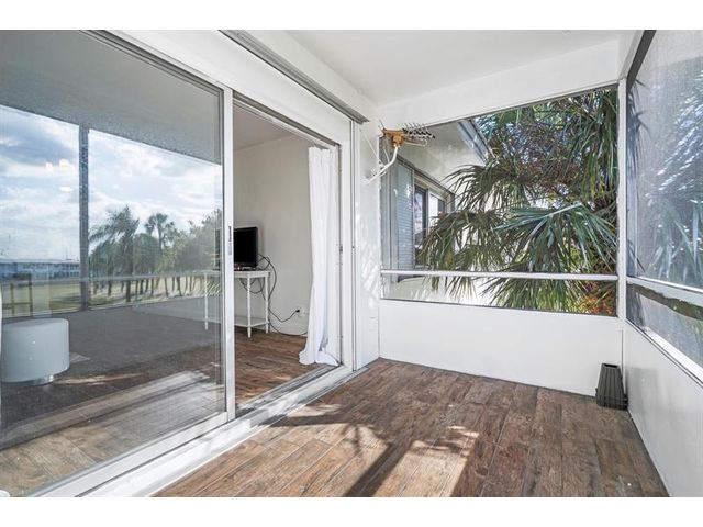 Move-in ready 1/1 condo on golf course in 55+ community. Kitchen updates feature cabinets, countertops and backsplash. Bathroom remodel includes tub shower combination + tile surround and more. Wood-like tile flooring extends throughout unit complemented by crown molding, baseboards, updated doors and modern fixtures. Sliders to screened in porch. Water heater 2024. Association requires 700 credit score, $350 application fee and a one time buyer capital contribution $500. Monthly HOA Fee $263. Monthly condo building maintenance fee $275. Monthly recreational land lease $122.
