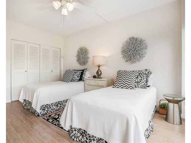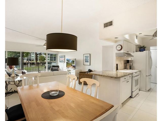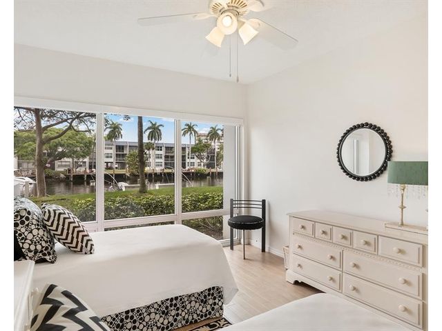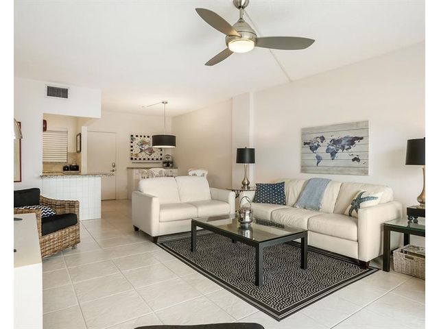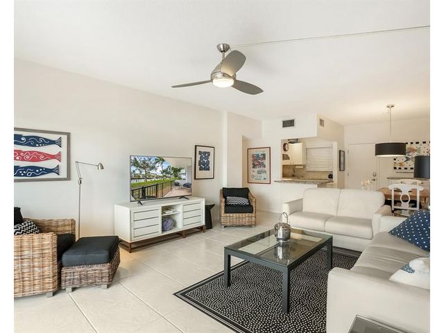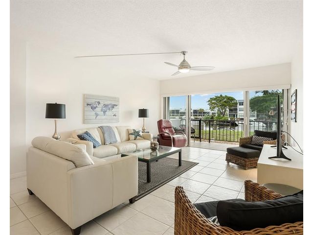 Enjoy stunning waterway and dock views from the large private porch, overlooking a peaceful no-wake zone with a relaxing parade of boats. This 2-bedroom, 2-bath residence offers convenient access and resort-style amenities including a heated saltwater pool, fitness center, clubhouse, BBQ area, and billiard room. Building certification completed with no pending assessments. Internet and cable included in maintenance. Ideally located near restaurants, golf, and shopping, and less than two miles to the beach. A move-in-ready coastal opportunity in a prime location.