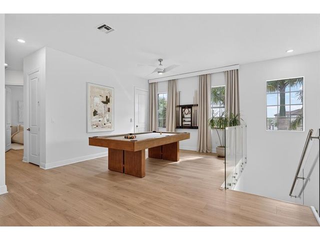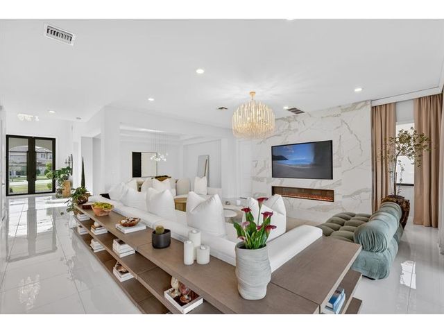 Discover elegance in this fully furnished 5-bedroom, 5.5-bath Willow model, located on one of the community’s largest lots for added privacy. With over $200K in custom upgrades and $300K in INCLUDED FURNITURE, this home showcases exceptional craftsmanship. Enjoy grand white porcelain tiles, a stunning white oak staircase with custom glass railings, and a designer quartz entertainment wall featuring a fireplace. Additional highlights include exquisite chandeliers, bespoke drapery, a full cabana bath, an upstairs loft, multiple walk-in closets, and a spa-inspired primary suite with a freestanding tub. Nestled on a private cul-de-sac, this remarkable property offers a lifestyle of comfort and luxury. Experience it today!