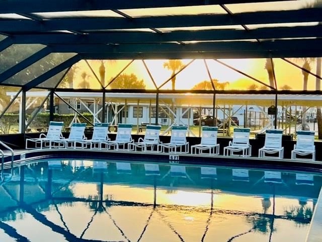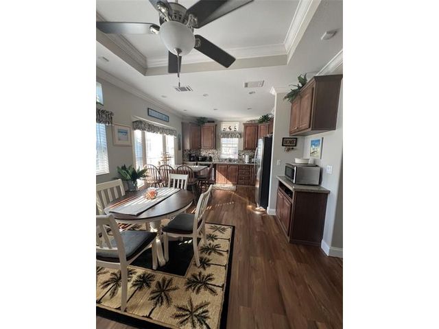 Beautiful 2019 Chariot Eagle with a 2022 addition, located in the desirable Ancient Oaks RV Resort a 55+active community offering resort-style living. This well-maintained home features 10-foot ceilings that create a bright open feel, along with laminate flooring throughout and custom blinds. The kitchen is equipped with GE appliances and a dishwasher, offering both style and functionally. Enjoy the convenience of a covered carport and relax outdoors with Outback patio furniture, which stays with the home. Furnished and turn key, making this home truly move-in ready. Community amenities include a heated pool, clubhouse, pickleball courts, billiards room, marina with boat ramp. Pet friendly. Ideally located near shopping, casino, dining and minutes from world-famous Lake Okeechobee fishing.