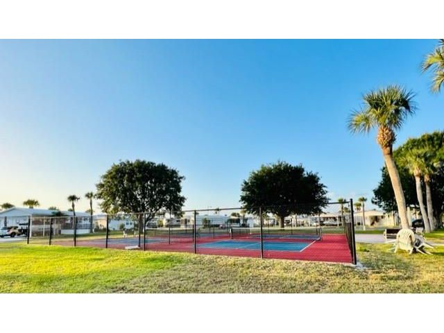 Welcome to Ancient Oaks RV Resort, a desirable 55+ gated community offering resort-style living and an active lifestyle. This cozy one-bedroom, one bath cottage-style home is move-in ready and comes fully furnished, making it ideal for seasonal or full-time living. The home has been tastefully updated and features a new AC (2025), newer refrigerator, and hurricane shutters for added peace of mind. Enjoy a comfortable and efficient layout that's easy to maintain and perfect for relaxing after a day of activities & fishing! Ancient Oaks offers world-famous fishing, a marina with boat ramp, heated pool, pickleball courts, billiards room, large clubhouse, and a full calendar of social events. Pet friendly community with pet parks. Affordable, low living in a friendly, active community.