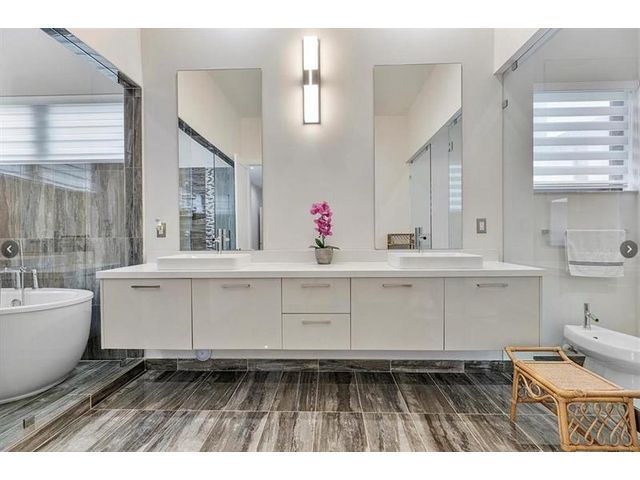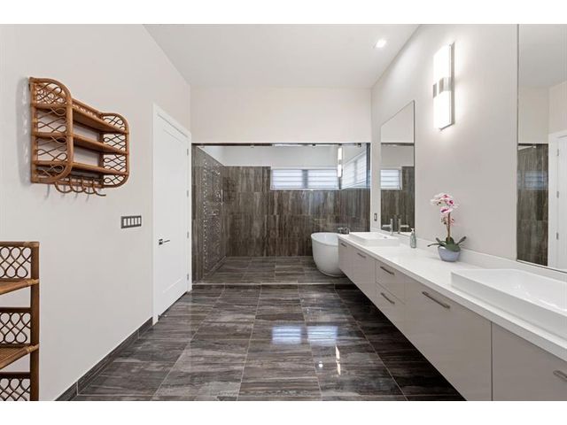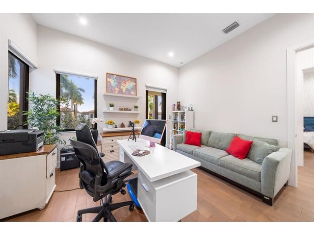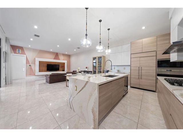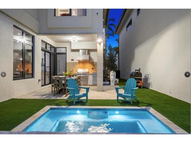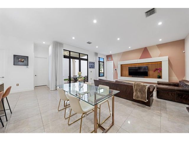 Step into luxury in this contemporary estate in Downtown Dorals prestigious Canarias community. This 5-bedroom, 3.5 bath home offers over 4,000 square feet with dramatic ceilings, natural light, and hurricane-impact glass connecting indoors and out. The chef’s kitchen features a waterfall marble island, custom Italkraft cabinetry, Sub-Zero appliances, and a wine refrigerator. Italian tile flows through open living areas and spacious bedrooms with walk-in closets. Smart home technology includes security cameras and app-controlled entry and garage. Enjoy clubhouse amenities and a private backyard with travertine patio, pool and spa, and built-in gas grill. Solar panels mean no FPL bills and uninterrupted power with no outages. Located near CityPlace Doral and Trump National Doral golf course