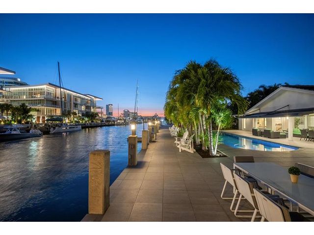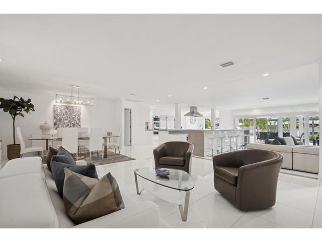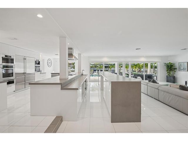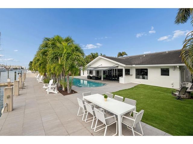 This beautifully designed single level ranch residence is thoughtfully designed in light, bright neutral tones, creating a timeless and sophisticated ambiance. The chef's kitchen seamlessly opens to expansive living and dining areas, ideal for both intimate gatherings and grand entertaining. The generously sized primary suite serves as a serene private retreat. Boaters will appreciate 95 feet of dockage with quick ocean access just minutes away. Outdoors, enjoy a resort-style lap pool and fully equipped summer kitchen, perfect for elevated waterfront entertaining. Ideally located near pristine beaches, acclaimed dining, and premier shopping destinations. Beach Club and Marina available.
