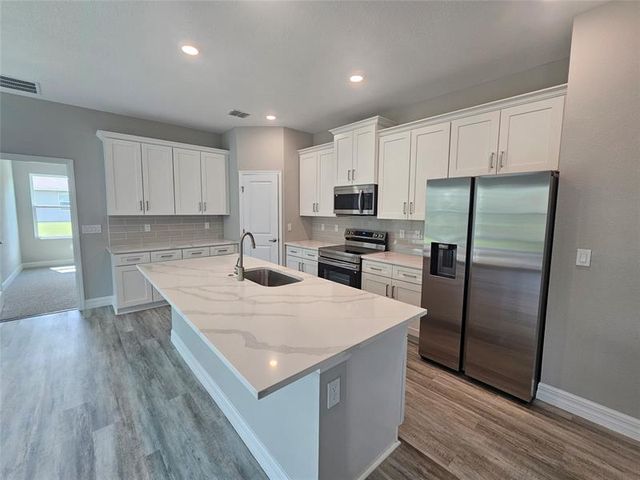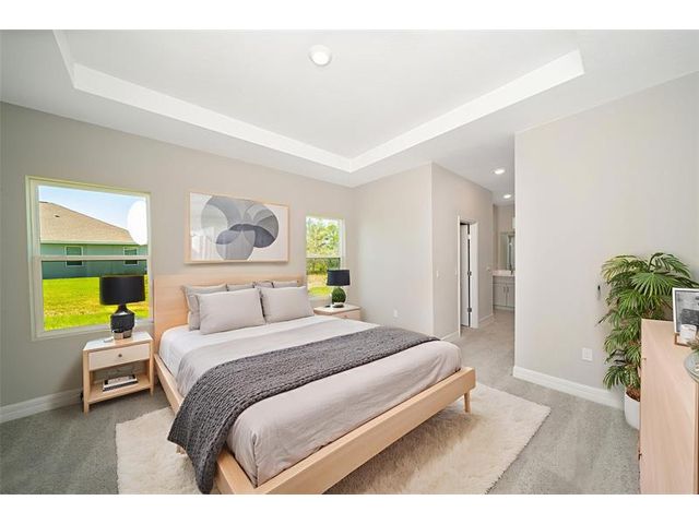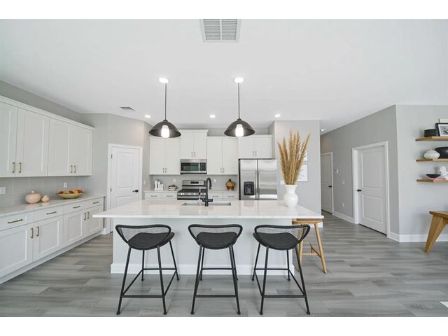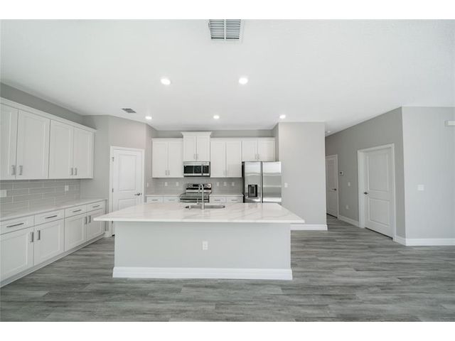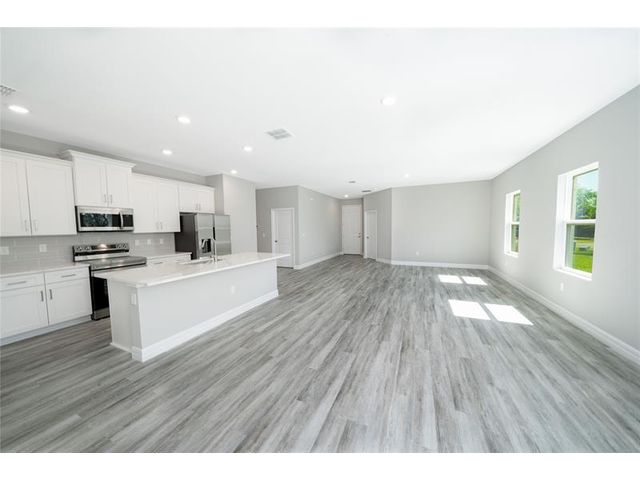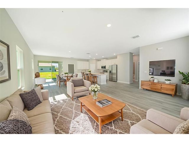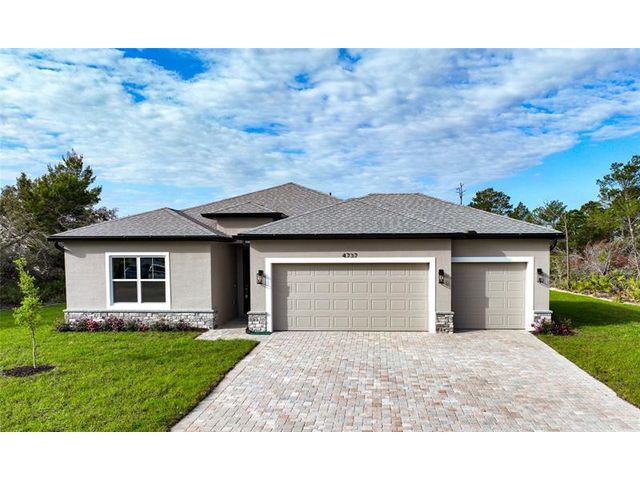 This New construction built in 2025 features a 4-bedroom, 3-bathroom layout with a 3-car garage and offering an open concept floor plan with abundant natural light and vaulted ceilings. The home also offers a welcoming covered entry and an expansive lanai, perfect for enjoying the Florida weather and extending your living space outdoors. The spacious primary suite featuring dual walk-in closets its truly a zen retreat. The 4th bedroom offers versatility as a second master suite, ideal for guests, in-laws or a home office, featuring its own full bathroom. Built with a commitment to quality craftsmanship, this residence seamlessly blends modern style with functional design to provide lasting value.