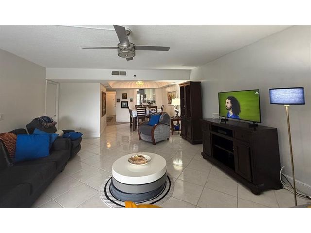 Spacious, beautiful and fully remodeled corner unit condo featuring two bedrooms and two bathrooms. Enter into a bright eat in kitchen with modern white quartz countertop, stainless steel appliances and ample cabinetry. The condo offers a large dining area and an open, inviting living room. Both bedrooms are generous suites, each completely remodeled and featuring double-sink bathrooms. Enjoy an enormous patio with large sliding doors, perfect for relaxing and taking in serene golf course views and fresh air. Washer and dryer inside unit. One covered parking space. The association offers tennis court, exercise room, and pool. Building equipped with a backup generator for uninterrupted elevator service. Association says 55+