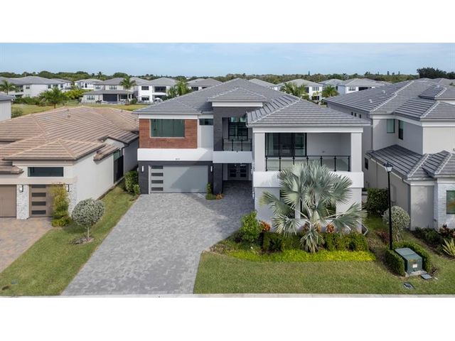 Maldives Premium - Largest model in Lotus Palm. This luxury lakefront residence in Boca Raton’s exclusive gated community offers 5 en-suite bedrooms with 7 bedrooms total with 2 half baths, a guest suite, office/den, game room, media room, loft, and a 4-car garage. Designed with soaring 20-ft ceilings and a chef’s gas kitchen, the home showcases upgraded 40x20 porcelain flooring throughout the main level. Three oversized balconies with sleek glass railings provide panoramic lake views. Enjoy resort-style living with access to a modern clubhouse, multiple pools, state-of-the-art fitness center, indoor basketball court, full-service restaurant, tennis, pickleball and more. Lawn care included. Conveniently located near A+ rated schools, shopping, dining, and all that Boca Raton has to offer.