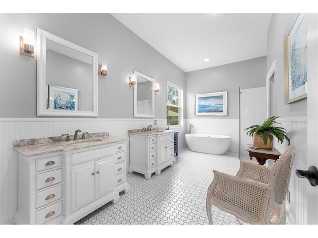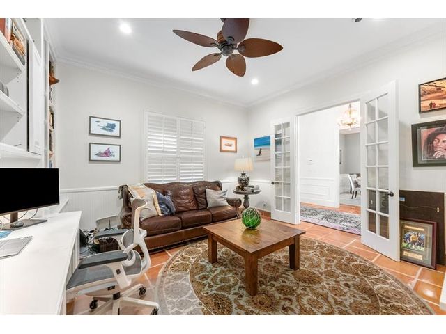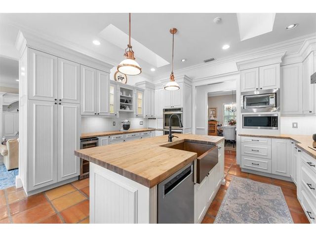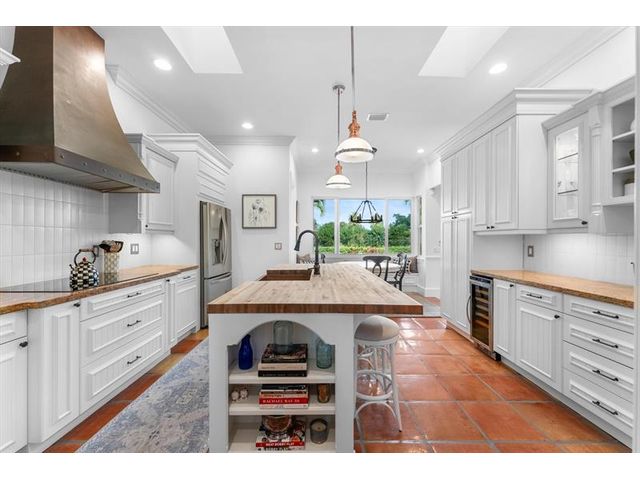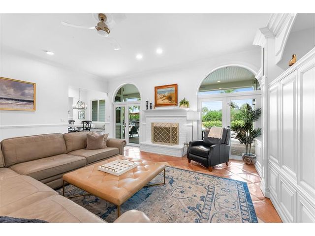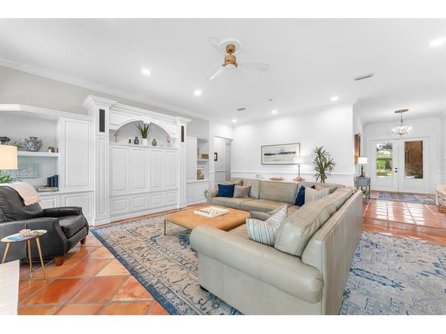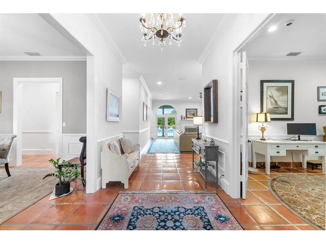 Tucked within coveted Prestwick Estates, this beautiful & perfectly renovated residence blends timeless elegance with modern sophistication. A 2025 metal roof & full impact windows/doors offer peace of mind. 1.06 manicured acres & a welcoming front porch creates striking curb appeal. The light-filled interior features beautiful finishes & views of the resort-style pool. The heart of the home is the great room with a fireplace & the crisp white island kitchen with top-tier appliances & materials. Primary suite has a new spa-inspired bath. Large secondary bedrooms, some with ensuite baths. Backyard offers an oversized saltwater pool with spa, summer kitchen & expansive lawn. A 1,200 sq ft Cat 5–rated garage with office accommodates cars, RV, or boat. Very close to Atlantic Avenue & Lake Ida.