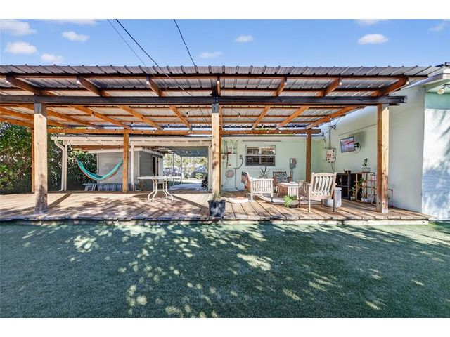 Welcome Home! This thoughtfully updated 3-bedroom, 2-bath single-family home is in the sought-after Pompano Beach Highlands. With 1,448 sq ft of comfortable living space, this move-in-ready home is easy to show and sure to impress. Inside, enjoy updated bathrooms and a charming farmhouse-style dining room adding warmth and character. Step outside to a private backyard retreat with a large covered deck, turfed yard, and mature shrubs for exceptional privacy. Major improvements include a new roof and solar panels installed by the seller, offering added value and peace of mind. Centrally located in South Florida, just 15 minutes from the beach, 20 minutes from The Pomp, and within an hour of all major tri-county destinations. Experience the comfort, charm, and convenience this home offers!