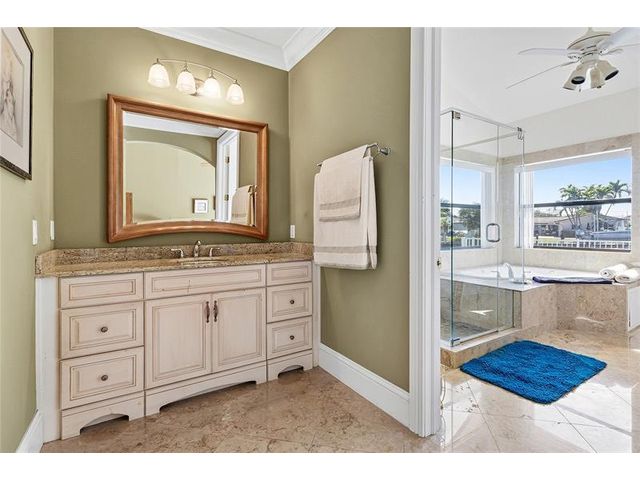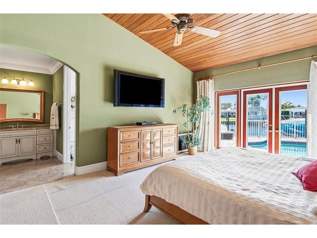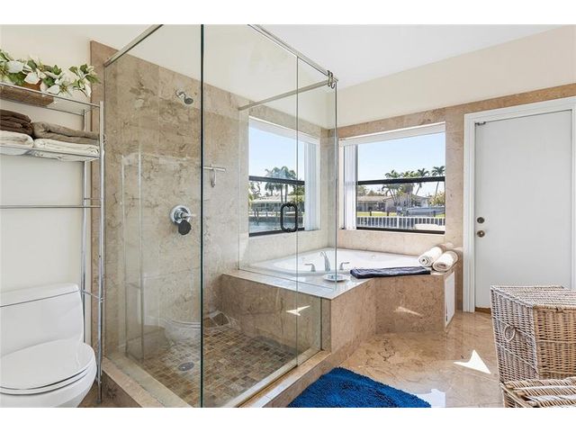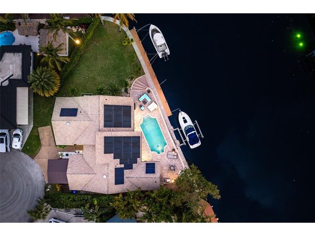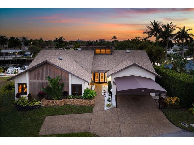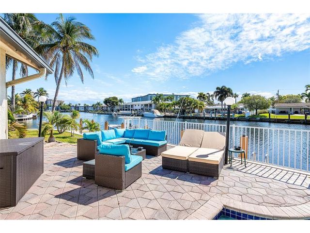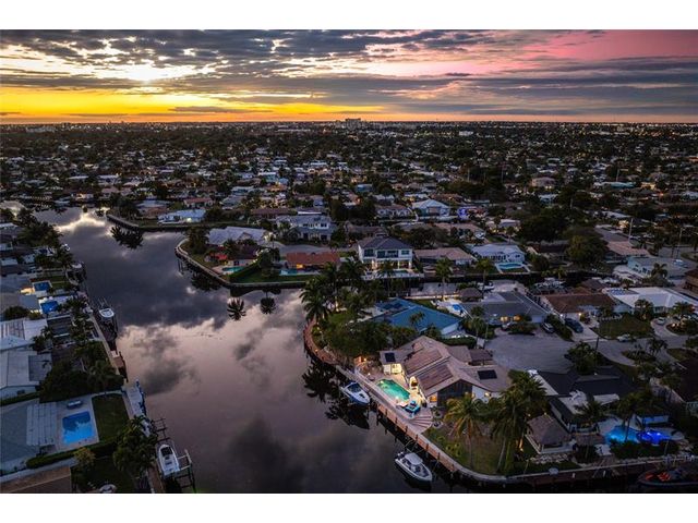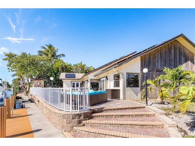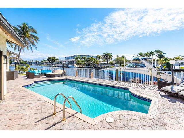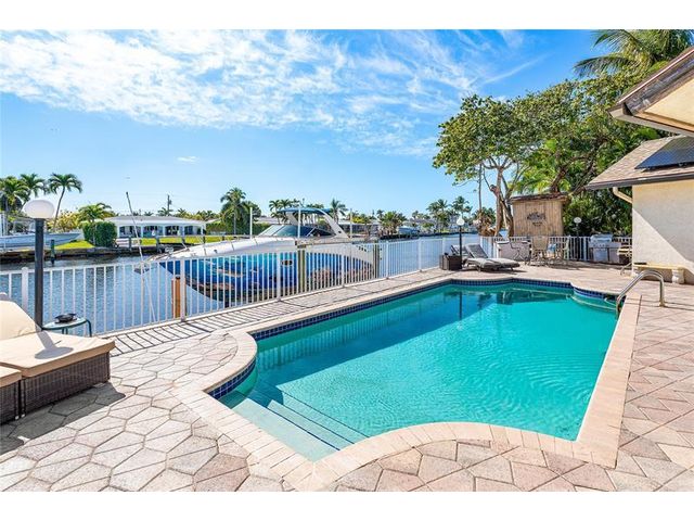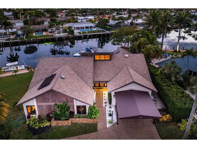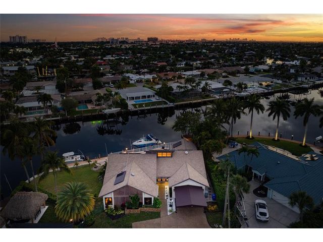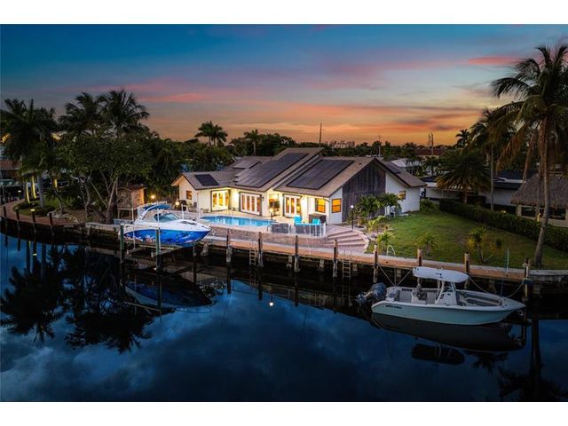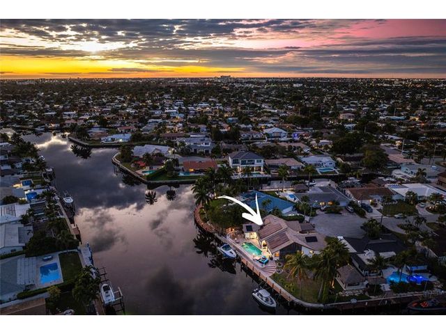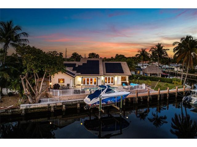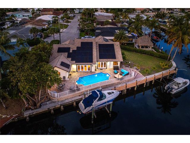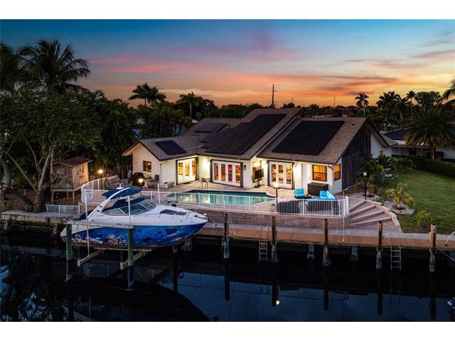 Pompano Beach is the place to be, offering a rare chance to own a spacious waterfront home with a newer seawall, home mostly rebuilt in 2006 after a hurricane. Soaring ceilings and French doors from the living room, kitchen, and primary bedroom open to the pool deck and waterfront dock, creating a seamless flow for entertaining. The layout includes a living room, bar, dining area, and kitchen—perfect for hosting. Solar panels boost energy efficiency. The large primary suite boasts a seating area, walk-in closet, spa tub, and shower with bay views. Outside, enjoy the pool, 148 feet of waterfront, and a southeast view of the wide canal leading to the Intracoastal. With Pompano Beach on the rise, now’s the perfect time to buy.
