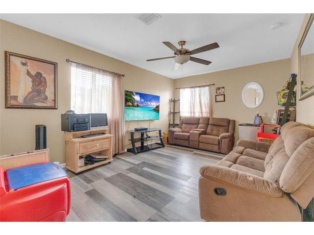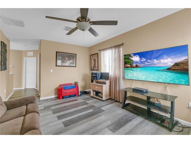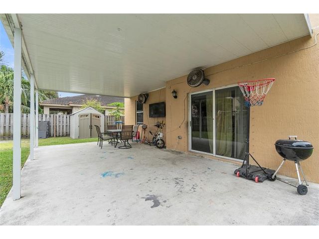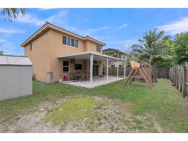Spacious two-story home featuring 4 bedrooms, 3 full bathrooms, and an upstairs loft ideal for a home office or additional living space. Functional layout includes at least one bedroom and full bath on the first floor. Tile flooring throughout the downstairs and wood floors upstairs. Enjoy outdoor living with a covered patio added in 2020, complete with concrete slab and aluminum roof. Fully fenced yard includes a swing play set and outdoor storage shed. Security cameras, doorbell camera, and aluminum storm shutters are included. Conveniently located near major roadways with easy access to shopping, dining, and malls.