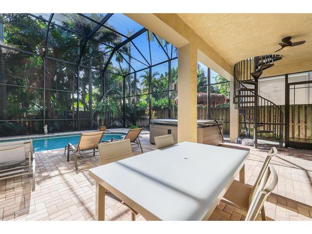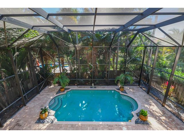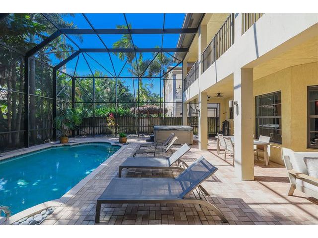 This show stopping two-story home delivers space, style, and location. Featuring 4 bedrooms and 3.5 baths, plus a dedicated office and exercise room. The chef’s kitchen shines with granite countertops and rich cherry cabinetry, flowing into a welcoming family room, breakfast nook, and an elegant formal dining room with soaring ceilings and marble floors. Impact-resistant windows and doors. Upstairs, the oversized primary suite is a true retreat with custom closets and a private covered balcony. Step outside to what truly sets this home apart — a fully enclosed two-story atrium-style backyard. This creates a private resort-like pool and spa oasis, surrounded by lush landscaping for year-round enjoyment. Arguably one if the most desirable streets in all of Wilton Manors!