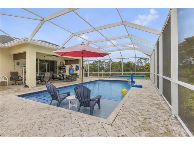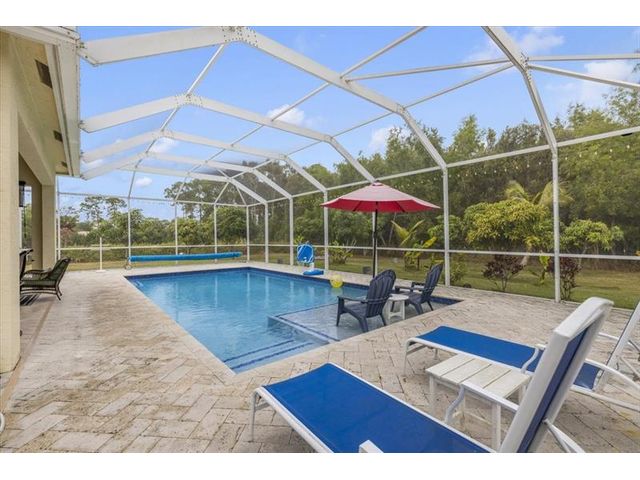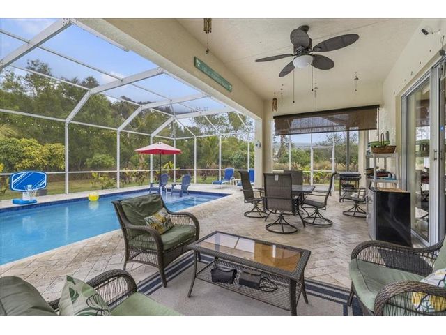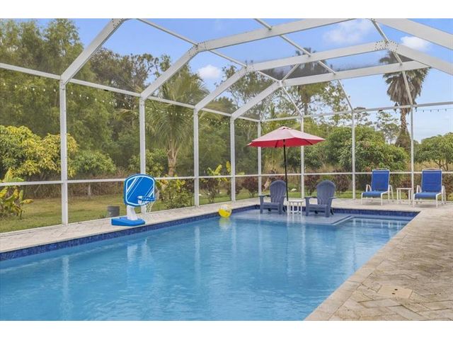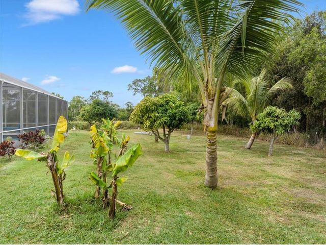 Welcome to your private paradise on 1.15 acres in Loxahatchee! This 4 bed, 2 bath 2017-built home features a heated saltwater pool, open-concept split floor plan, tall ceilings, and elegant finishes throughout. The granite kitchen opens to a spacious great room ideal for entertaining or relaxing. Over 50 fruit trees—including mango, banana, coconut, and avocado—create your own orchard oasis. Enjoy peace of mind with full gutters, a new well pump, and a security system with 6 HD cameras. The spacious backyard is fully fenced and includes a shed. An EV charger is perfect for your electric vehicle, trailer, or RV. Located on a paved road with no HOA, this home offers the perfect blend of privacy and convenience. Plenty of room for pets, toys, gardening, or future upgrades.