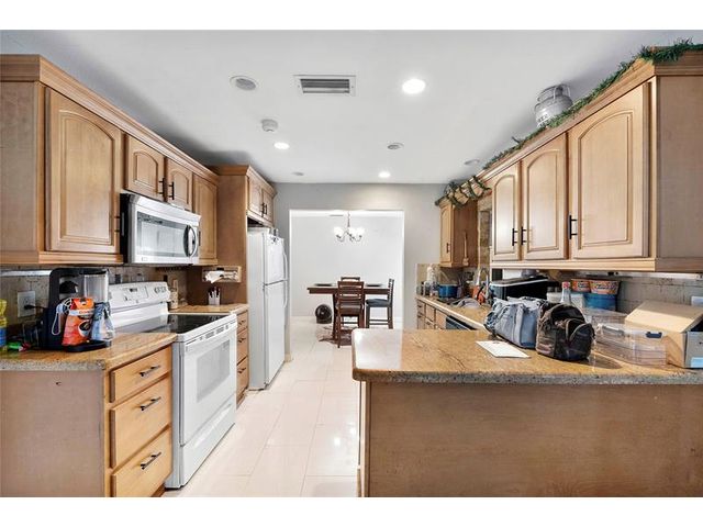 Cozy 2-bedroom, 1-bath single-family home with a den. Featuring a spacious kitchen with wood cabinets, granite countertops, and dishwasher, plus a dedicated laundry room, Impact windows, and a 2018 roof, tile and wood-laminate flooring throughout. One-car garage with access on both sides of the property, offering ample space for a boat, camper, or work equipment with wood gates. Large, fully fenced backyard. Excellent location close to shopping, restaurants, and schools. No HOA!