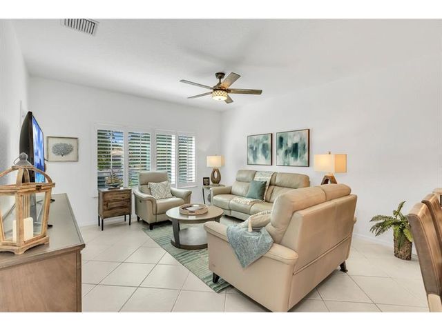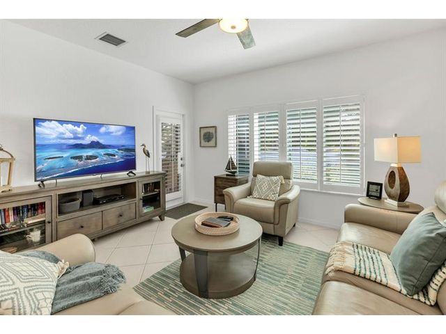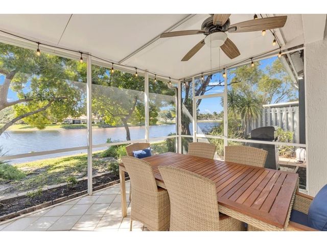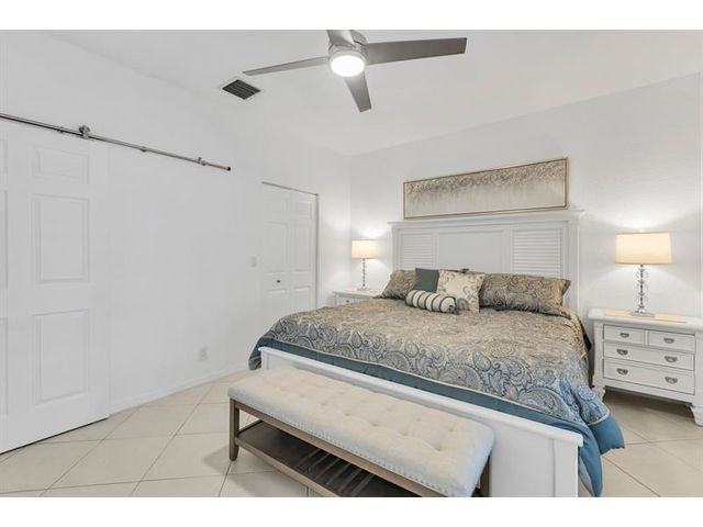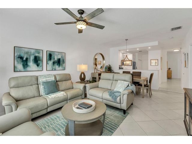 Magnificent Lakefront 3/2 Villa w/ Garage, Enjoy the Peaceful Garden & Lake view from the Extended Screened in Patio, also Great for Fishing. Tastefully Furnished, ready for Snowbirds. Nothing to be done here, Beautifully Redone. New kitchen and Baths in 2024. Plantation Shutters. Double Protection: IMPACT Windows and Sliding Doors and Accordion Shutters. Open White Eat-in-Kitchen w/ Quartz Countertops, Glass Backsplash, Recessed Lights. Split Bedrooms. Master Bedroom w/ large Walk-in-closet. Master Bath w/ shower only + double sinks & Barn Doors. New AC 2021. Excellent Resort Style Gated Community w/ Pools, Clubhouses, Playgrounds, Tennis, Pickleball, & Much More. HOA Fee covers Cable, Internet, Ext. Insurance, Reserves. New roof in 2019. Great Location, Great Schools! Close to shoppes!