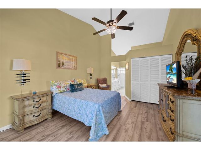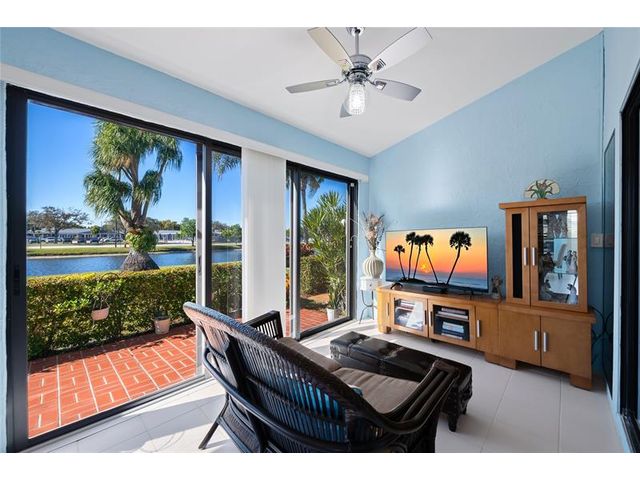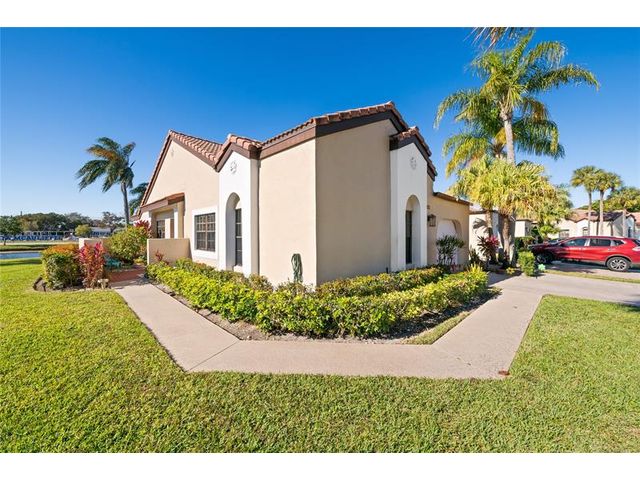 Light and bright 3-bedroom (the 3rd bedroom is used as an open den/office but can easily be converted) 2-bathroom corner villa with a tranquil lake view, located in the desirable 55+ community of The Moorings. This spacious home features an attached 1-car garage and an expanded driveway for added convenience. Interior highlights include volume ceilings, a modern kitchen with white cabinetry, newer countertops, stainless steel appliances, a split-bedroom floor plan, Florida room, newer vinyl flooring in the bedrooms, updated bathrooms, and a full-size washer and dryer. Enjoy low-maintenance living with access to a community clubhouse and pool. No mandatory membership fee. Per association: 650 minimum credit score required, no renting for the first 2 years of ownership, and 1 pet allowed.