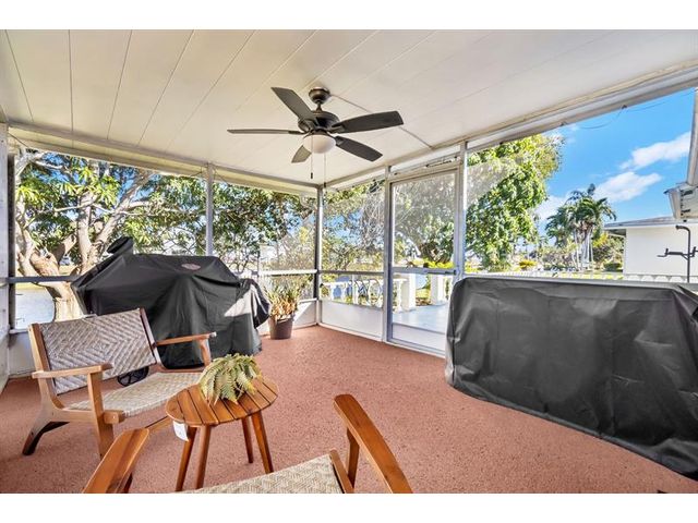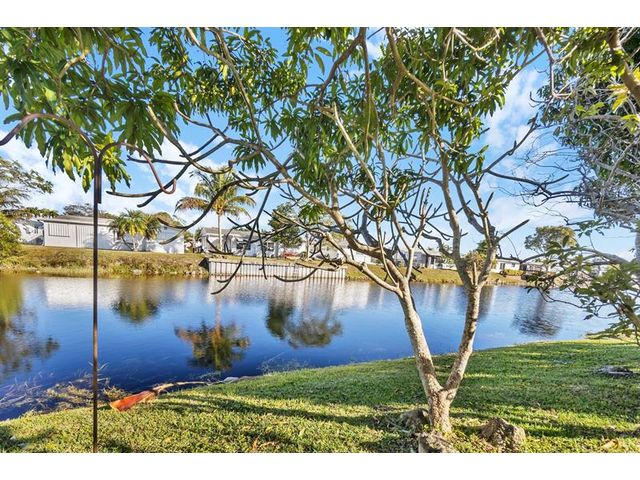 Waterfront serenity awaits in Paradise Gardens III. This impeccably maintained home sits on a wide lot directly on the Stranahan River (C-14 Canal), offering expansive water views. The backyard is a private tropical oasis with sweetsop, mango, cherry, and avocado trees. The interior boasts a bright, open floor plan with ceramic tile and a kitchen bathed in natural light from a central skylight. Recent upgrades include a newer 5-ton A/C, newer water heater, updated bathrooms, a newer washer/dryer, hurricane-rated garage door, and accordion shutters. Enjoy true Florida living with both a covered screened patio and an oversized open patio. This 55+ community offers a clubhouse, pool, and fitness center. Low HOA fees include lawn care and exterior painting. HOA requires 700+ credit score.