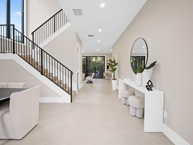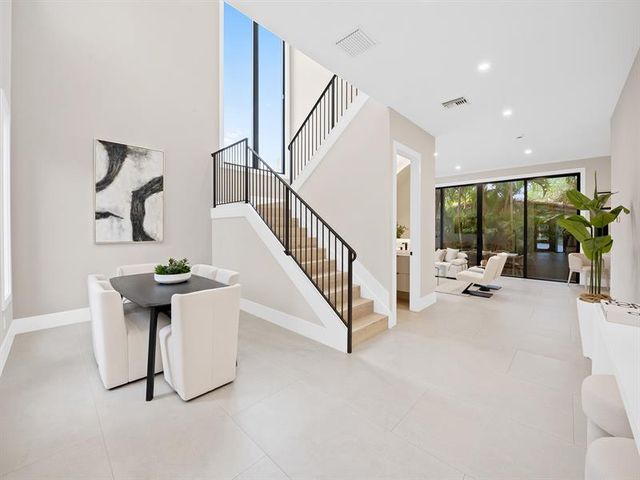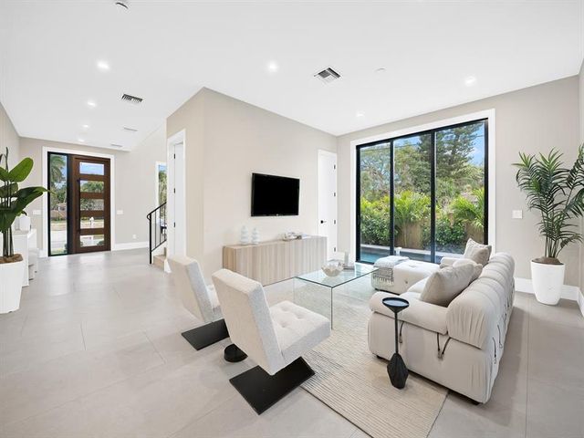 NEW CONSTRUCTION & READY FOR OCCUPANCY | Inspired by contemporary design & architecture in E. Fort Lauderdale. Walls of glass illuminate the open concept design with volume ceilings conducive to today's lifestyle. The culinary kitchen offers upgrade appliances, tremendous storage & a large center island for casual meals & entertaining. The great room opens onto a large side yard with a pool & patio area ideally positioned for sun & tropical breezes. The spacious primary suite boasts a large walk-in closet & lavish bathroom with dual sinks, oversized shower, soaking tub & water closet. 2 additional bedrooms share a full bathroom. Conveniently located 2nd floor laundry room. Oversized 2 car garage provides additional space for storage. Minutes to shopping & restaurants. Sq Ft from architect.