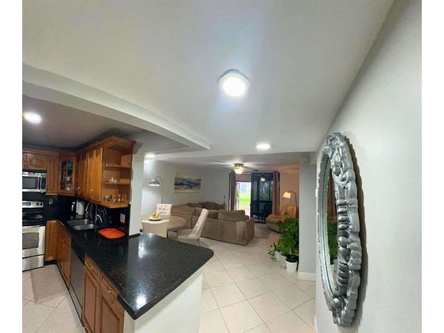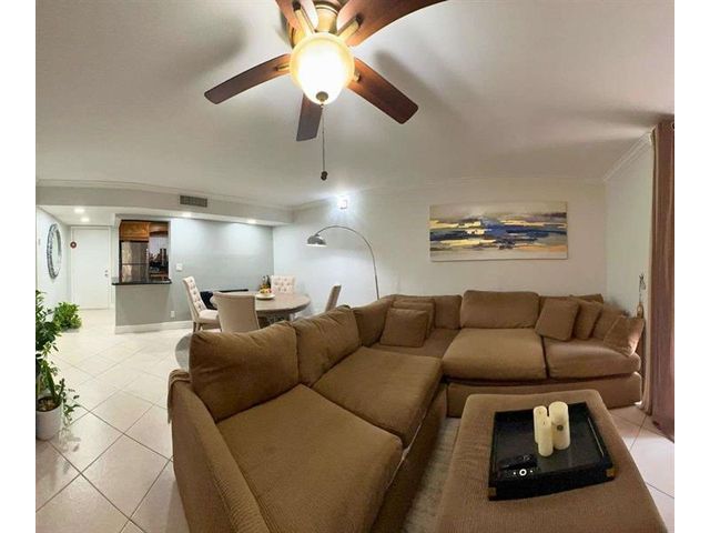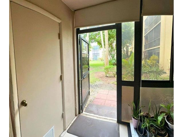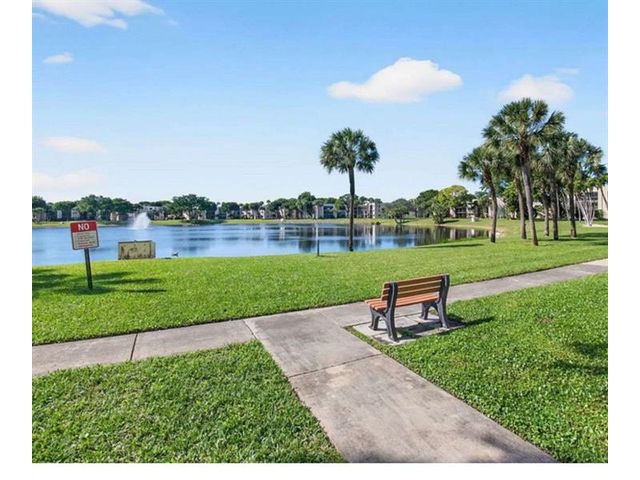 Move-in ready ground-floor Delray Beach residence offering 2 bedrooms and 2 bathrooms with 930 square feet of well-designed living space. This updated condo features a desirable split layout with a spacious dining area, open galley kitchen, and bright living room overlooking peaceful garden views. A rare dual-entry design provides both a main entrance and a private garden-side entry with direct access toward the lake and scenic walking paths. The covered and screened patio is enclosed with acrylic doors and windows, extending the living space and creating an ideal setting for relaxation or entertaining. Interior upgrades include smooth ceilings, LED lighting, crown molding, modern baseboards, ceramic tile flooring throughout, and updated interior doors.