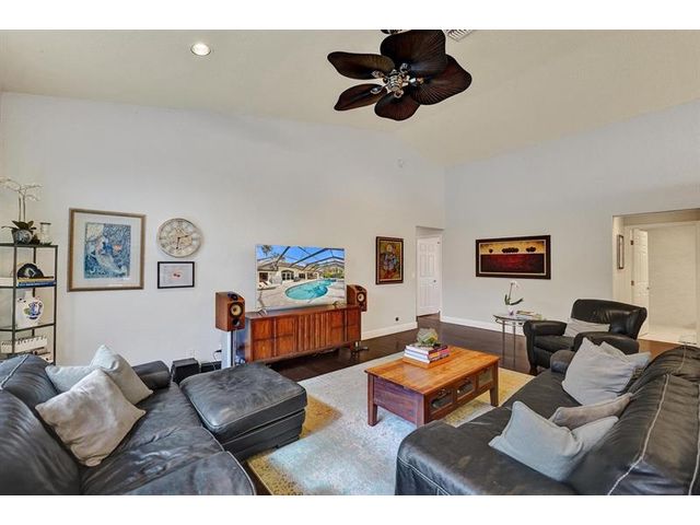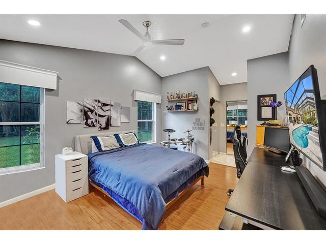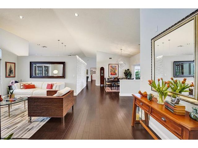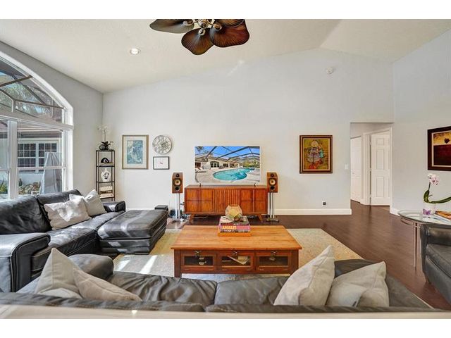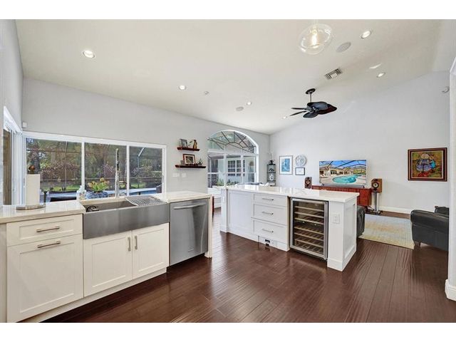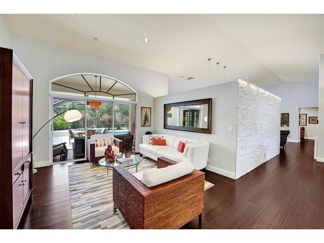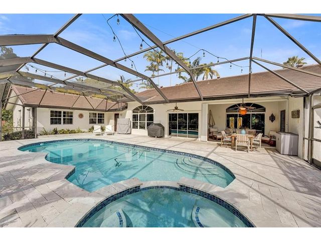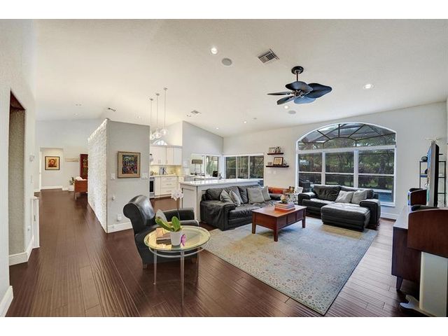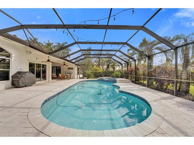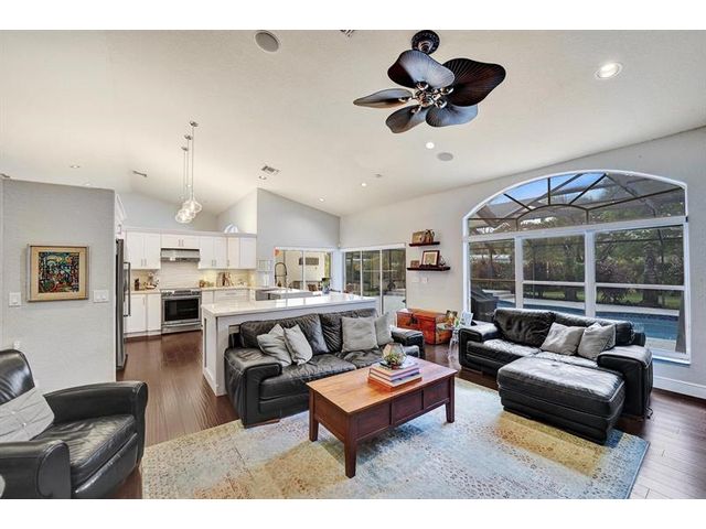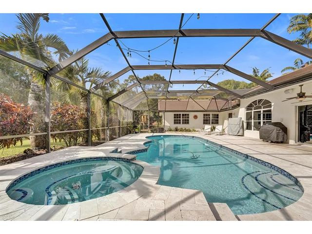 Nestled on a private cul-de-sac in a coveted Davie enclave, this exquisitely upgraded residence offers refined indoor-outdoor living. The designer kitchen features custom cabinetry, while renovated powder room, cabana bath, & Jack-and-Jill baths provide spa-like comfort. Rich wood floors flow thru the main living spaces w/ integrated LED lighting thruout. Outdoors, enjoy a resort-style pool & patio surrounded by professionally landscaped gardens, architectural stonework, landscape lighting & mature fruit trees. The expansive yard includes a pecky cypress playhouse. New roof (2023), 3-zone A/C, hurricane-rated garage door & shed, EV charger, whole-house surge protector, generator, ADT security, outdoor cameras & new washer/dryer. Impeccably maintained and truly turnkey— A MUST SEE!