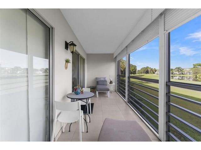 Discover this beautifully remodeled residence where elegance meets everyday comfort. The open, eat-in kitchen flows effortlessly into the dining and living areas, creating a welcoming space ideal for entertaining or casual gatherings. Step onto the serene screened patio and take in unobstructed, panoramic views of the golf course and shimmering water with a fountain—a stunning and peaceful backdrop. The home also features custom closets providing generous storage and a desirable north-facing exposure that fills the space with natural light while minimizing direct sun. Conveniently located in a prime location within walking distance of the community’s most sought-after amenities.