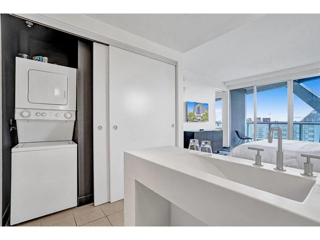 Solid Rental history and excellent ROI can be sold with management in place! Dramatic sweeping views! corner one bedroom in luxurious "W Residences" on upper floor of full service resort features generous spaces, king size bedroom, balcony, w/d ,living room sweeping views of the intracoastal waterway and Atlantic ocean. Two heated pools, gym, spa and 3 top tier restaurants. Close walking distance to beach bars/restaurants in preferred north beach location. Turn key ready to go with short term tenants lined up when owner is away! A luxury resort setting, ideal as a residence, second home or prime investment property w/strong revenue history. Flexible rental options daily/ monthly - with or w/o MANAGEMENT IN PLACE! Best of all- steps to the ocean's edge! Great for home, rental or both!
