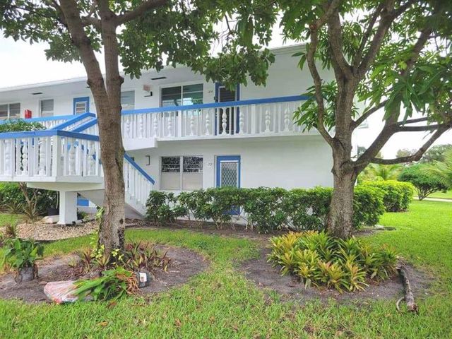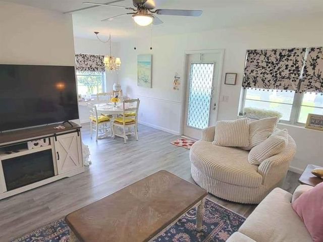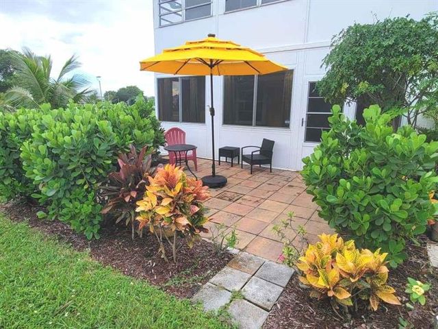 Immaculate Turnkey First-Floor Corner Unit – Fully Remodeled and Furnished. Bright and airy 2BD/2BA, move-in ready to enjoy the Florida lifestyle. Features laminate flooring throughout, modern kitchen with granite countertops, stainless steel newer 2022 appliances, and cabinets. Recent upgrades include a new A/C with Nest thermostat, water heater, and new electrical panel. 2-minute walk to Clubhouse and the on-site restaurant and pools. Relax on landscaped back patio with beautiful view. Experience resort-style living with endless social activities or simply relax under the Florida sunshine. 10 minutes to the Beach ... perfect for those who love both relaxation and active living. Will not last!