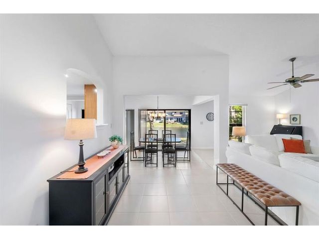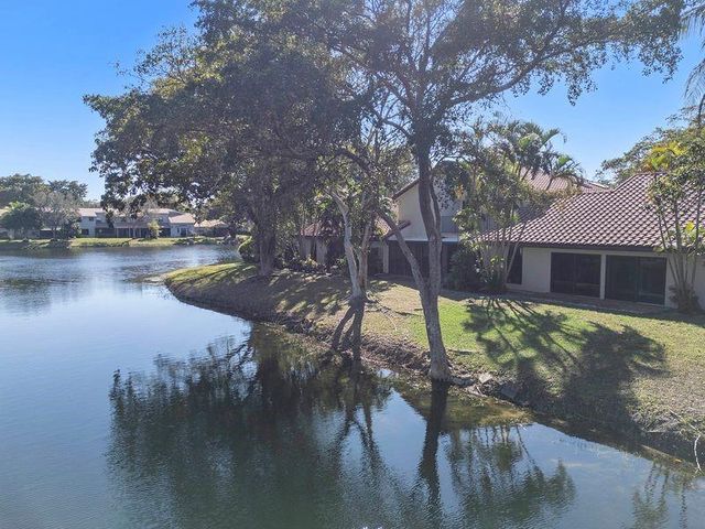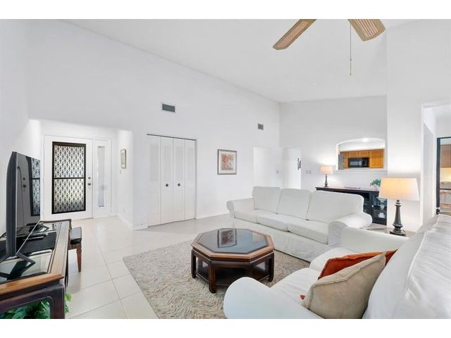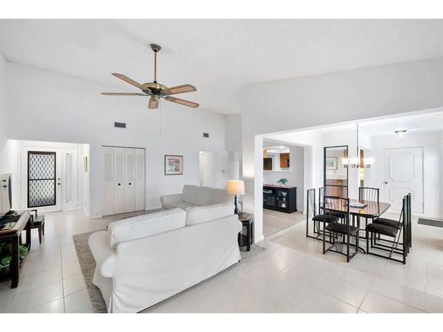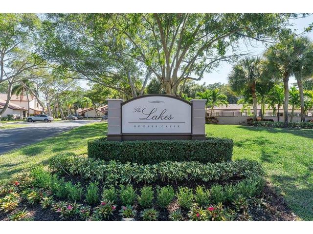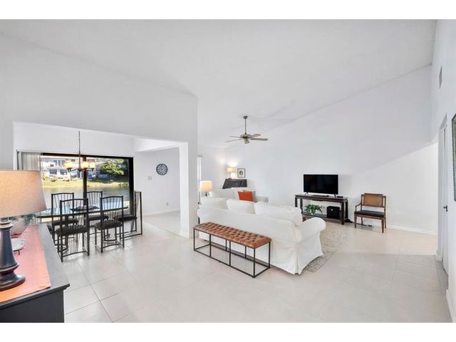 Furnished 2-bed, 2-bath waterfront villa in The Lakes of Deer Creek. Ideally situated across from the community pool, hot tub, and clubhouse, with 2 assigned parking spaces just outside your front door plus ample guest parking. This charming villa features vaulted ceilings, impact glass windows & sliders, neutral tile flooring throughout, large bedrooms, closets galore and tranquil lake views. The enclosed patio provides additional interior space, w/ sliders that open to an outdoor porch overlooking the water. Deer Creek is a public golf community with no mandatory membership—simply pay as you play and enjoy the on-site bar and grille. Conveniently located near shopping, dining, major x-ways, and just 4 miles to Deerfield's award-winning beach! All ages welcome; 1 pet ok per assoc.