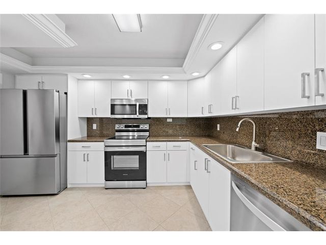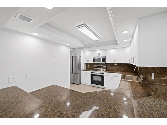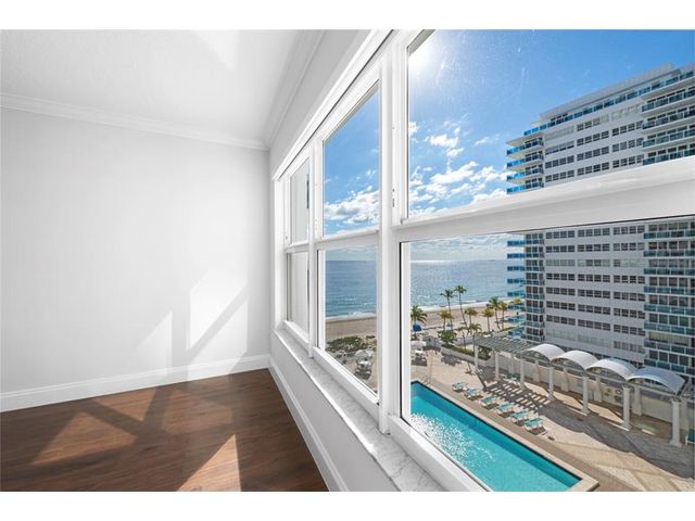 Spacious ocean front condo w/ ocean views from every room and a desirable south exposure. Large glass balcony, perfect for relaxing or entertaining. Unit has been refurbished w/ new kitchen cabinets, stainless steel appliances, granite countertops, and bright LED lighting throughout. Bathrooms feature new vanities, with the guest bath offering new shower tile and glass doors. Primary bedroom includes a large walk-in closet plus an additional standard closet. Contemporary tile flows throughout the unit. Impact windows and doors. Includes a garage parking space and a full-size storage locker. Amenities include 2 gyms, community room, billiard room, large heated pool, gas grills, & more. Ideally located within walking distance to dining, entertainment, grocery stores, and more.
