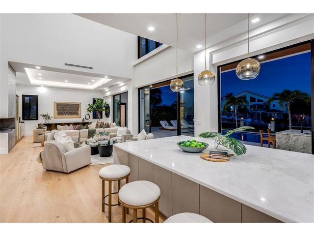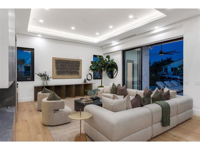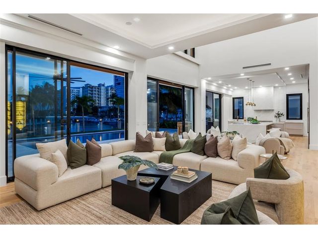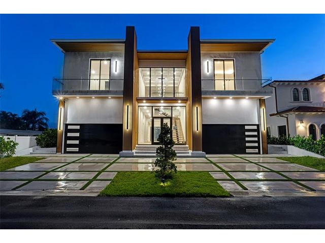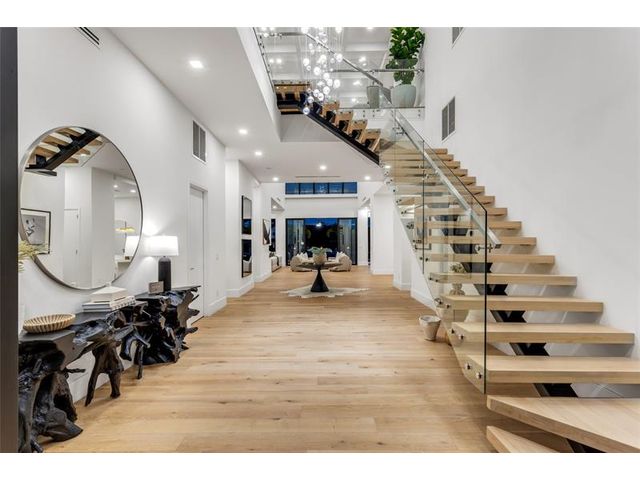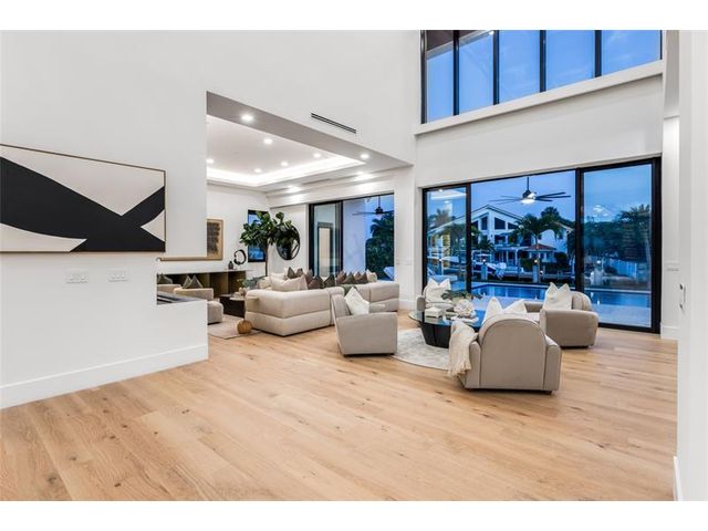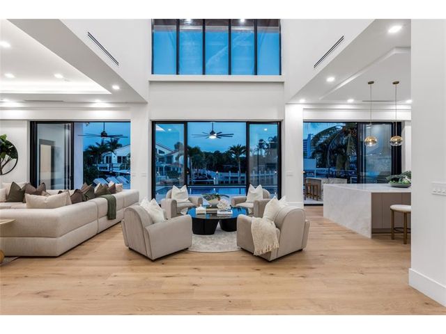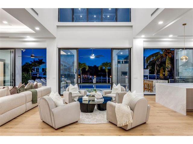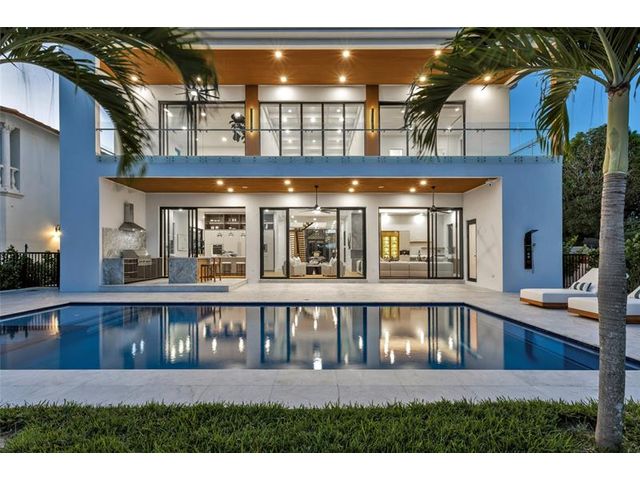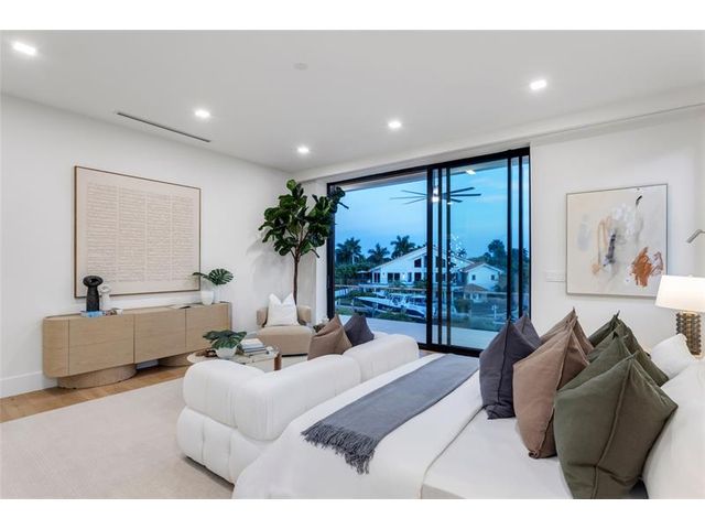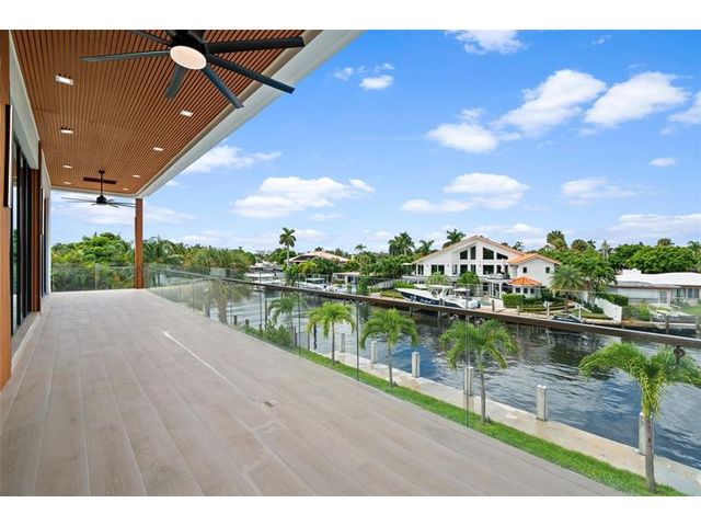 New Architectural Modern deepwater estate sited on 70 +/- feet of waterfrontage on a quiet lane of only 16 waterfront residences off South Ocean Blvd with private keyed beach/parking access by the creative team of Ocean Home Builders and Architect 1. Stunning organic design encased in glass with all major rooms facing the waterway. Resort-style pool with spa/ sun shelf, expansive lanai with summer kitchen, Cabana with sauna and salt room and boat dock. Other amenities include smart house technology, dramatic center string staircase, volume ceilings, full-width waterfront covered balcony,BR #7/gym and 4 bay garage with ready electric car charger. Shown by appt only. Staging and furnishings by Vesta Home; all furniture available for purchase