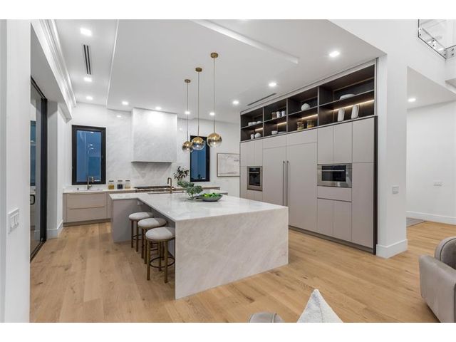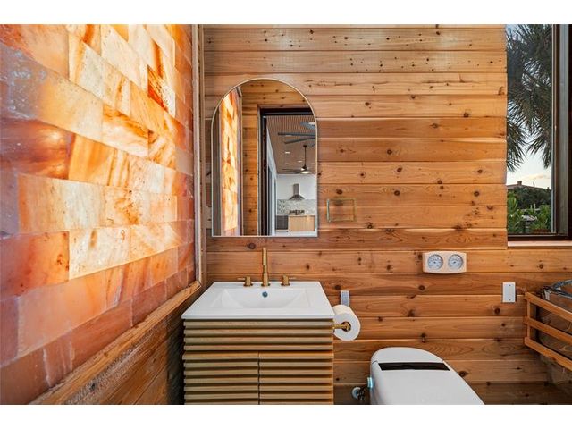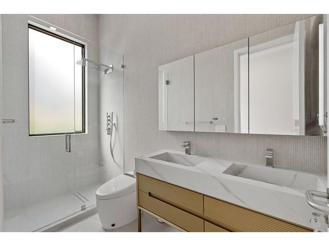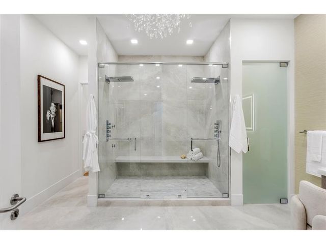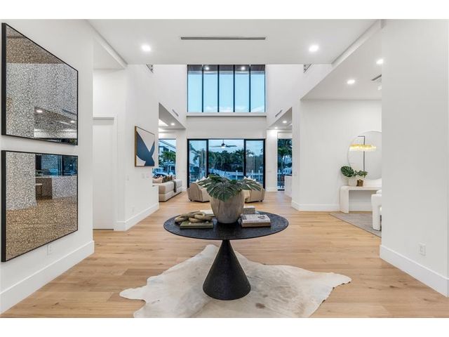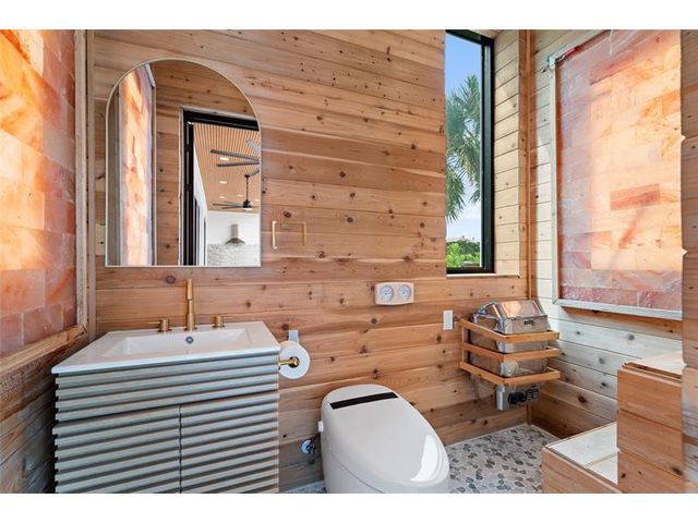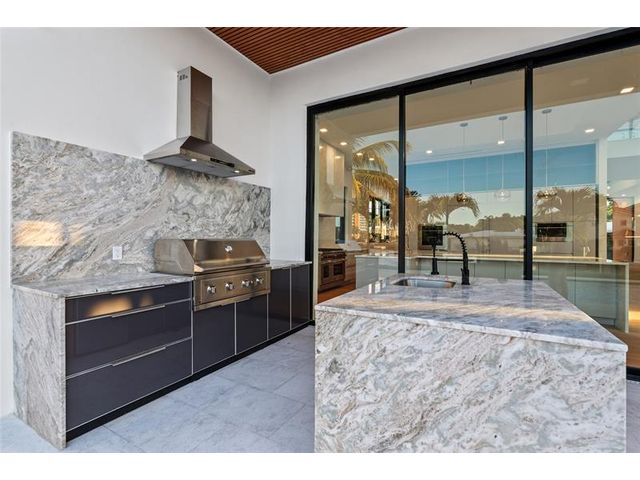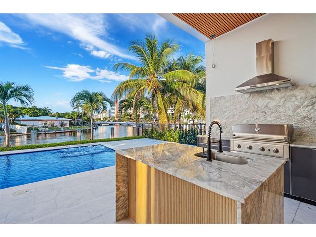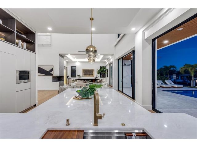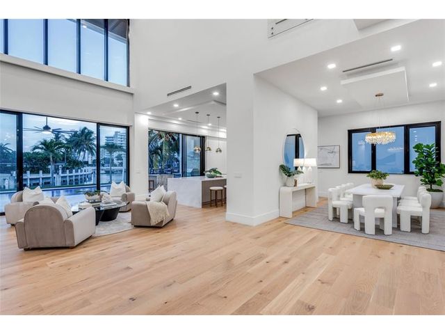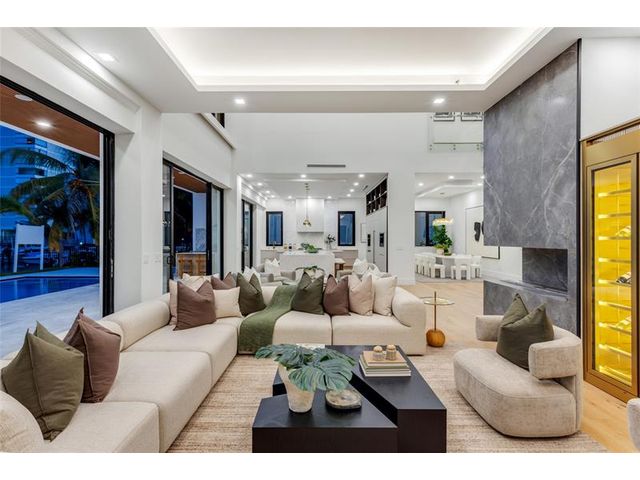 New Architectural Modern deepwater estate sited on 70 +/- feet of waterfrontage on a quiet lane of only 16 waterfront residences off South Ocean Blvd with private keyed beach/parking access by the creative team of Ocean Home Builders and Architect 1. Stunning organic design encased in glass with all major rooms facing the waterway. Resort-style pool with spa/ sun shelf, expansive lanai with summer kitchen, Cabana with sauna and salt room and boat dock. Other amenities include smart house technology, dramatic center string staircase, volume ceilings, full-width waterfront covered balcony,BR #7/gym and 4 bay garage with ready electric car charger. Shown by appt only. Staging and furnishings by Vesta Home; all furniture available for purchase