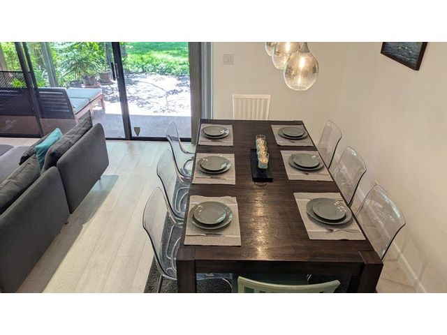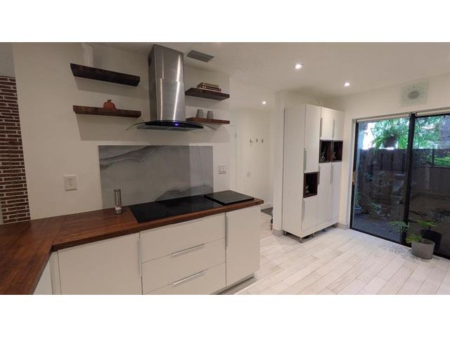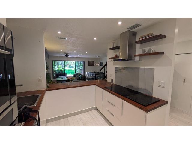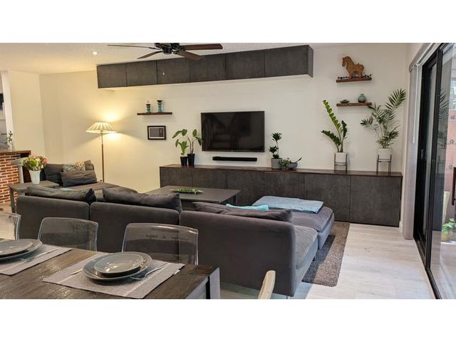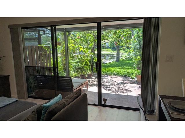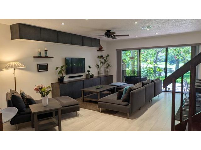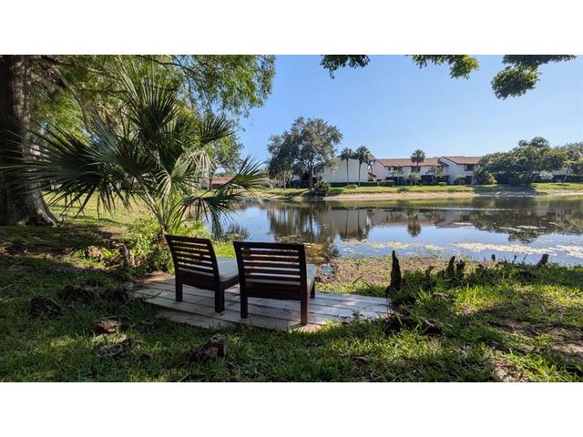 Welcome to this beautifully renovated 3-bed, 3-bath lakefront corner townhouse in the desirable Golden Raintree community—known for its safe, quiet, and cozy atmosphere. Home offers a spacious, open layout with thick walls that provide extra privacy and help keep the interior cooler. Step inside to enjoy modern finishes throughout, including laminate and hardwood flooring, recessed lighting in the kitchen/living area/bathrooms, and a vaulted ceiling in the primary suite. The remodeled kitchen features stainless steel appliances, wood countertops, and smart storage solutions. Oversized sliding glass doors open to peaceful lake views and a relaxing patio. A/C 2024, fully upgraded attic offering excellent storage. Community is fully funded, very well maintained, no special assessments.