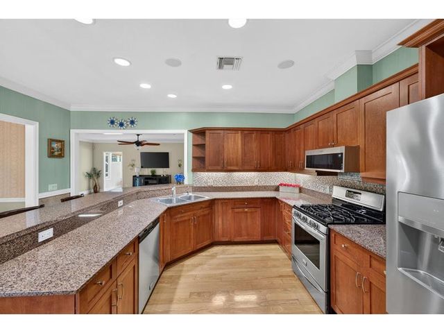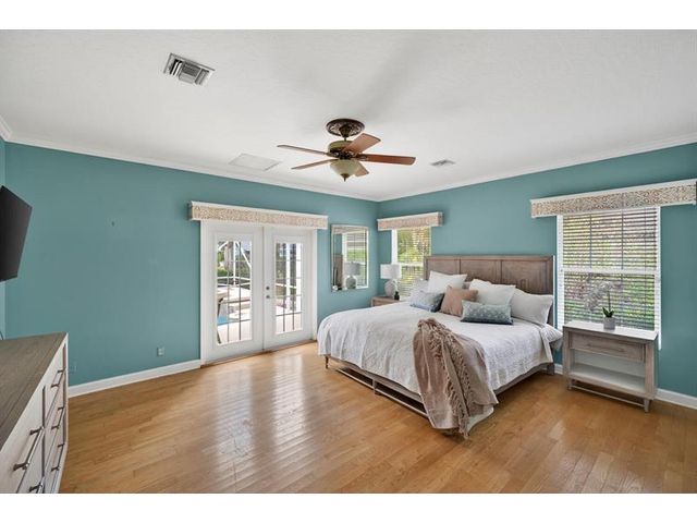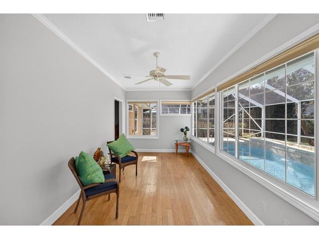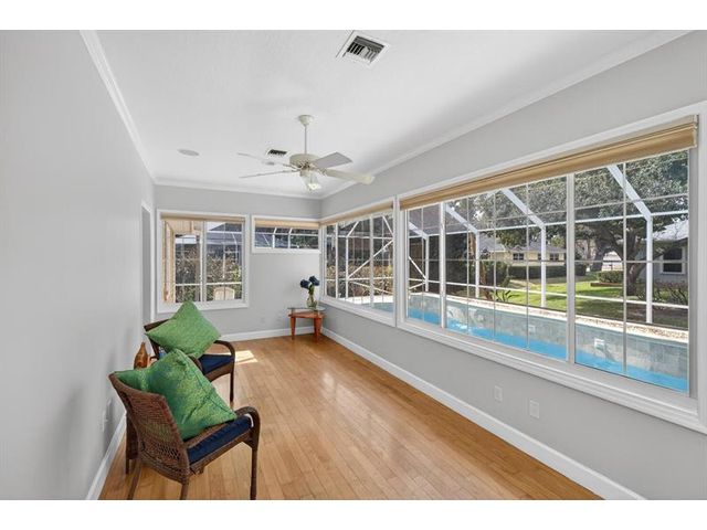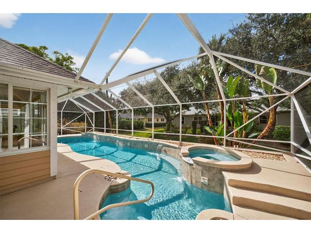 Quintessential 3/3/2 charmer on larger .29 lot with custom private pool. This unique property, built by highly respected local builder, architect design. Home was ahead of it's time with upgraded features. Now it awaits you! Attention to detail, rare real hardwood floors throughout, crown molding, cultured marble tile & more. Enjoy peace & tranquility from your screened poolside oasis, freshly painted light & bright Florida room, with IMPACT storm windows. Granite counters, spacious rooms, custom shelving. Gas propane leased, tankless water heater, generator & more. Ideal quiet tree lined st.
