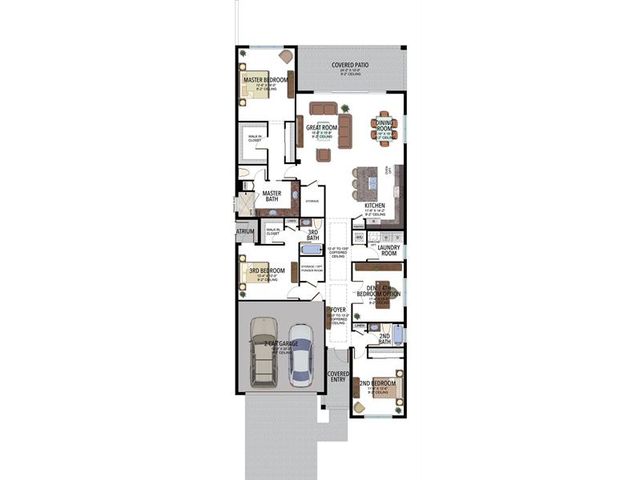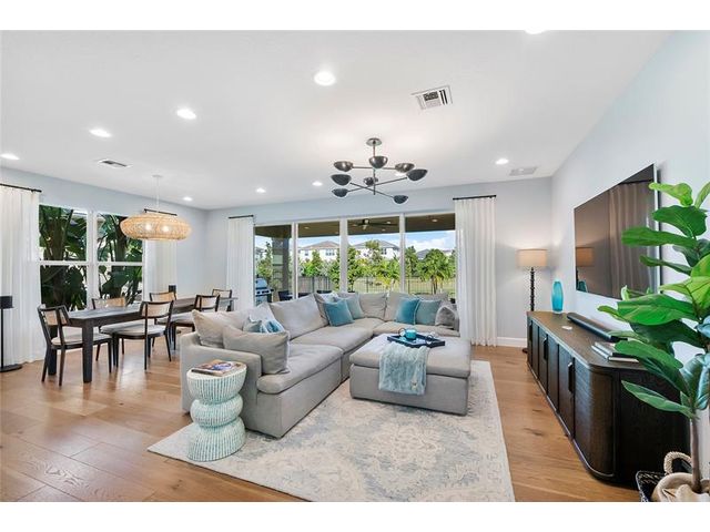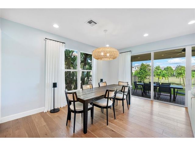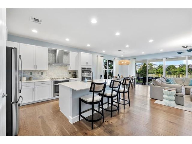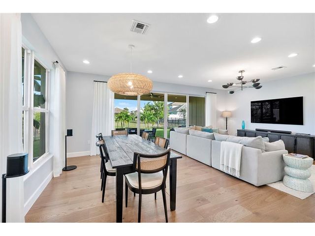 Must-see, one-story home in the sought-after Arden community, a GL Homes design, offering exceptional value with no need to compromise. This 4-bedroom, 3-bath residence features a spacious great room design ideal for entertaining or everyday living. Enjoy a HUGE rear yard overlooking a peaceful green space, complete with rear yard fencing & a covered lanai. Thoughtful upgrades include engineered wood flooring & a whole-home water filtration system. The modern kitchen boasts upgraded stainless steel appliances, a double wall oven, & a generously sized island. Secondary bedrooms are thoughtfully separated from the private primary suite, which offers an oversized shower & double vanities. Ample storage. Arden features affordable HOA fees, abundant amenities. Square footage is approximate.