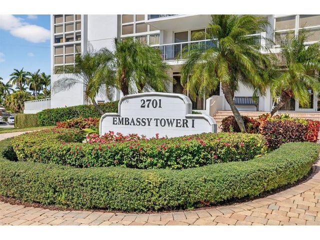 This condo offers stunning unobstructed views of the ocean from every room & an oversized balcony to enjoy them! You are walking distance to the ocean & Publix! This unit is the best stack (A) at prestigious Embassy Tower (ET). ET has undergone multi-million $ structural renovations over the past 5 years. The HOA fees for 2026 are unchanged & there are no current assessments. The condo offers 2 bedrooms, 2 baths with a split floor plan & all impact windows. Large storage space & conveniently located parking spot in the garage. Plenty of guest parking! All utilities (incl cable & internet) are included in the monthly fee except for electric! Pool, sauna & fitness center on the first floor. HOA wants 675+ credit score. No pets. Come live the luxury lifestyle you crave under the Florida sun!