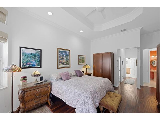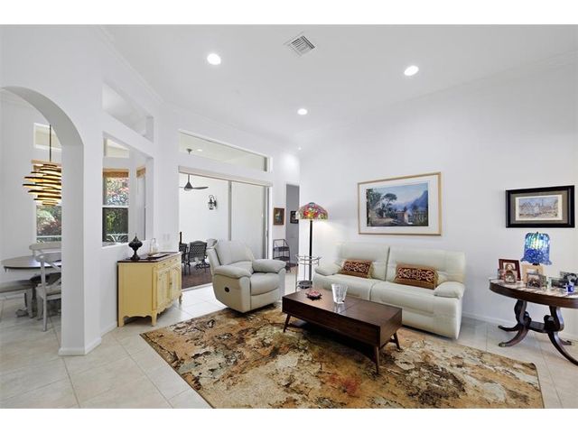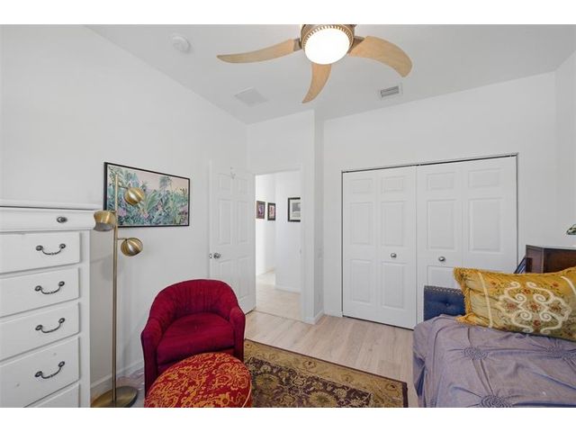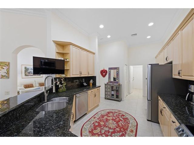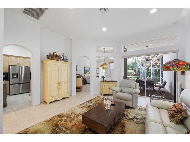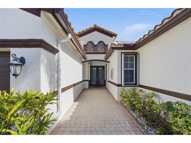 Welcome home to this beautifully maintained 3-bedroom, 2-bath single-family residence located in the prestigious gated 55+ community of Bellagio. Tucked away at the end of a quiet cul-de-sac, this home offers exceptional privacy with a desirable private lot and tranquil water views to the left of the property. The very open floor plan creates a bright, airy feel and is perfect for both everyday living and entertaining. Recent improvements include custom closets throughout, wallpaper removal with fresh interior paint, and refreshed kitchen cabinetry with newly redone cabinet faces. Enjoy peaceful surroundings, thoughtful updates, and the relaxed, resort-style lifestyle Bellagio is known for, all in a prime, low-traffic location. Ideal for year-round living or seasonal enjoyment. A must see.