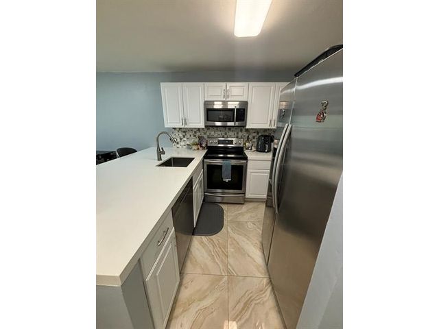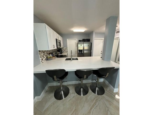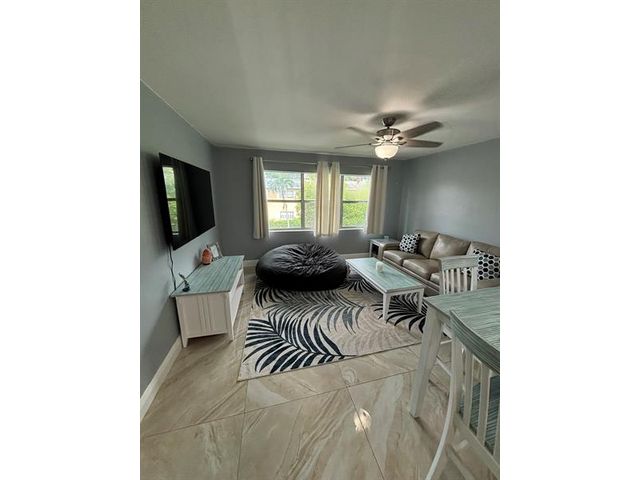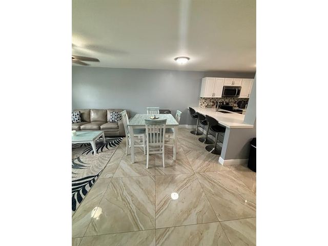 This great priced three bedroom two bath is an UPDATED corner unit. Freshly painted with all new blinds. Washer and dryer in the unit. 36X36 porcelain tile throughout. Open kitchen with stainless steel appliances mosaic tile backsplash, and countertops. A/C is 2024 and H/W from 2018. Brand new entry doors. Located in East Deerfield Beach near and the stores, shops, Pier, and the beach. All ages and pet friendly. Investor friendly with no waiting period to rent. Minimum three month rental and no more than twice a year. All the concrete restoration is complete and is approved by the city. Entire building freshly painted.