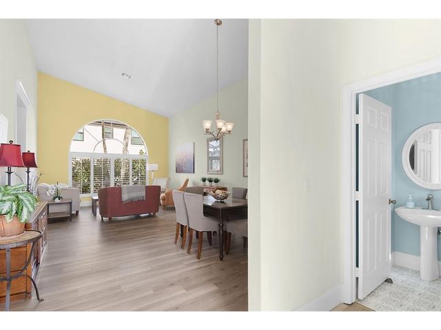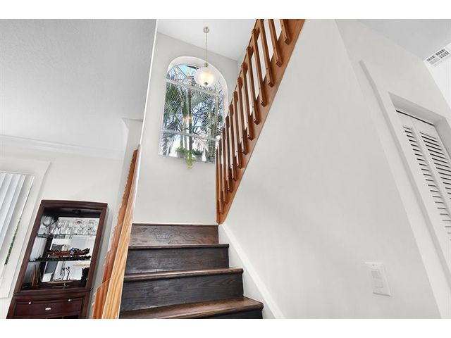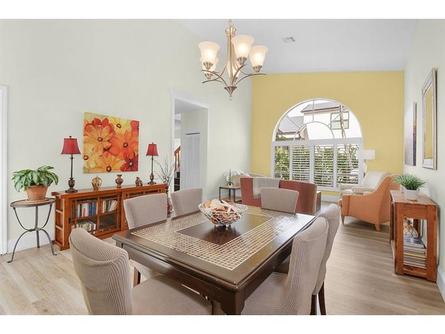 Welcome to this beautiful Two-Story impeccable Home in Guard-Gated Golf Community. This spacious two-story home is offering 4 bedrooms, 2.5 bathrooms and 2,241 square feet of well-designed living space. The thoughtfully planned layout features generous living and dining areas. The kitchen opens to the main living space and provides ample cabinetry and counter space. Lovely and bright kitchen nook with banquet seating. All bedrooms on the second floor are comfortably sized, with the primary suite offering privacy. Step in the covered lanai overlooking a large backyard surrounded by mature trees that provide shade, privacy, and a peaceful outdoor setting. Highlights include, roof 2018, AC 2022, HW: 2023, front door 2017. North Passage has pool, tennis, pickle ball, gym. Applica fee: 150.00.
