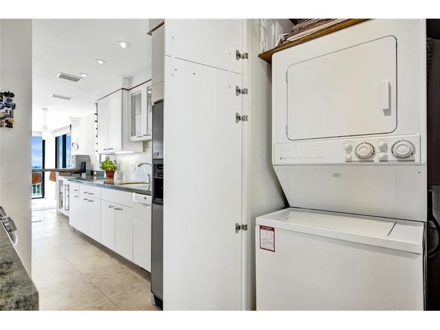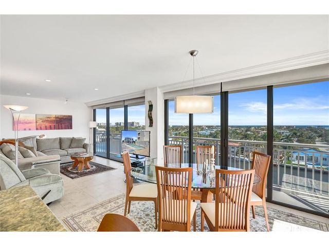 Amazing Direct Intracoastal & Ocean Views - an absolute must see!! Large tiled open living area & features impact windows & doors throughout. Beautifully Updated kitchen & an in-unit washer & dryer. The spacious primary bedroom includes two walk-in closets & an ensuite bathroom with double sinks, bidet, a separate shower & tub. AC is 2020, HWH 2022 & the unit comes with 1 covered garage spot & a 2nd garage spot is available for purchase - both right by the elevator. Attention Boaters: There is boat dockage available, ocean access - NO fixed bridges. Amenities include a pool, BBQ area, gym, & community room. Well-maintained pet-friendly building that has completed their 40-year inspection and has a NEW ROOF. No upcoming assessments & building has reserves.